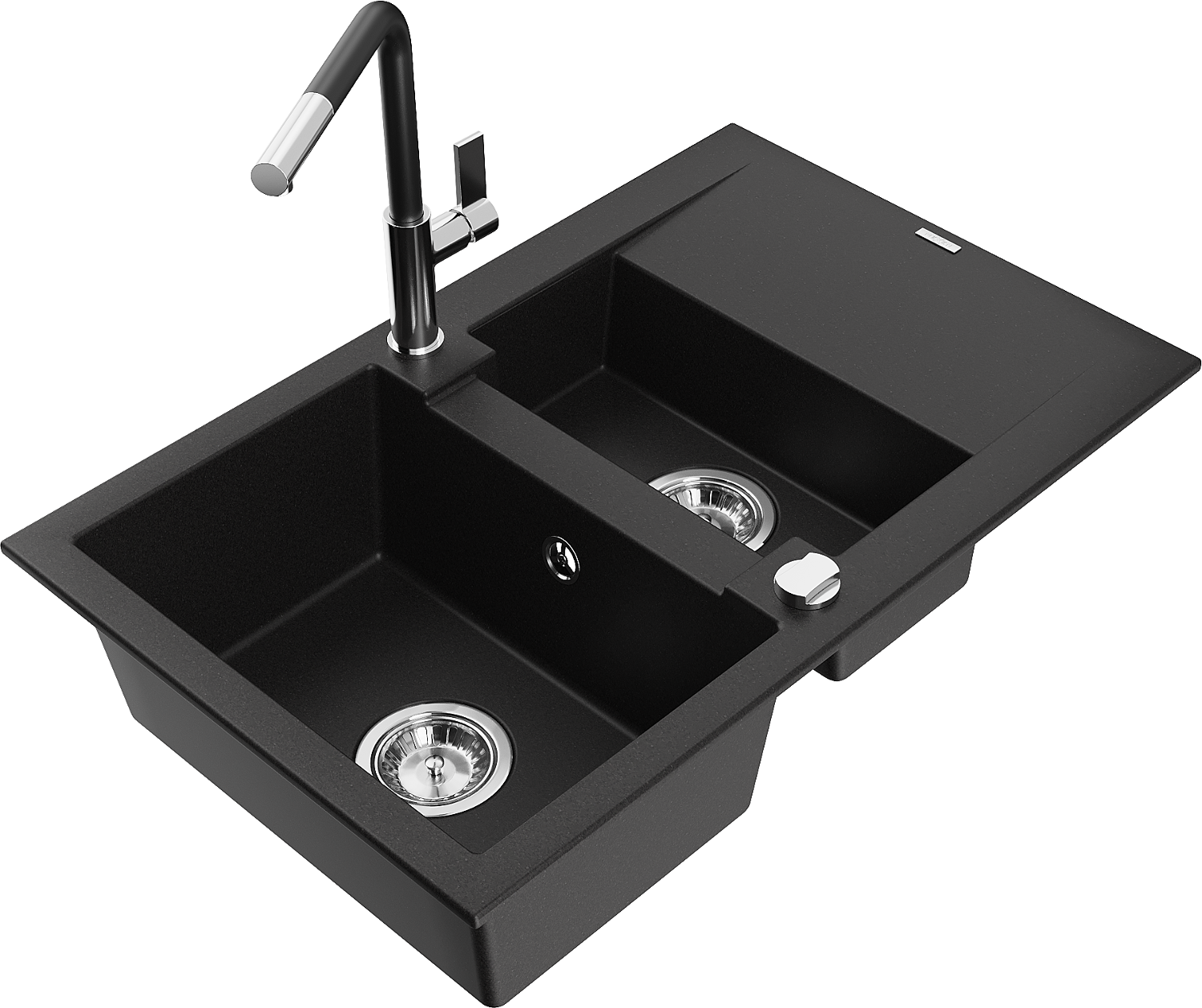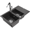 Mexen Gaspar granieten gootsteen 1,5-kamer met afdruiprek en keukenkraan Flora, zwart - 6507-77-670401-07