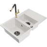 Mexen Gaspar granieten spoelbak 1,5-komerig met afdruiprek en keukenkraan Flora, zwart - 6507-77-670401-57-B