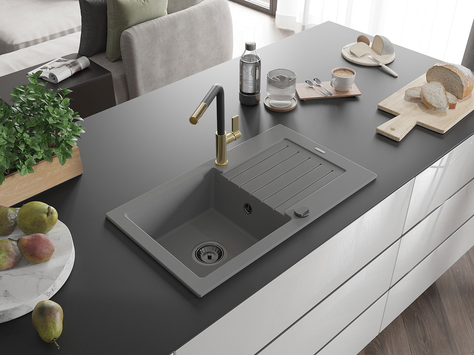 De gootsteen is gemaakt van hoogwaardig graniet. Het vormt een elegante en vooral praktische aanvulling op elke keuken, ongeacht de stijl. De hoge kwaliteit en duurzaamheid van graniet zorgen voor jarenlang gebruik.