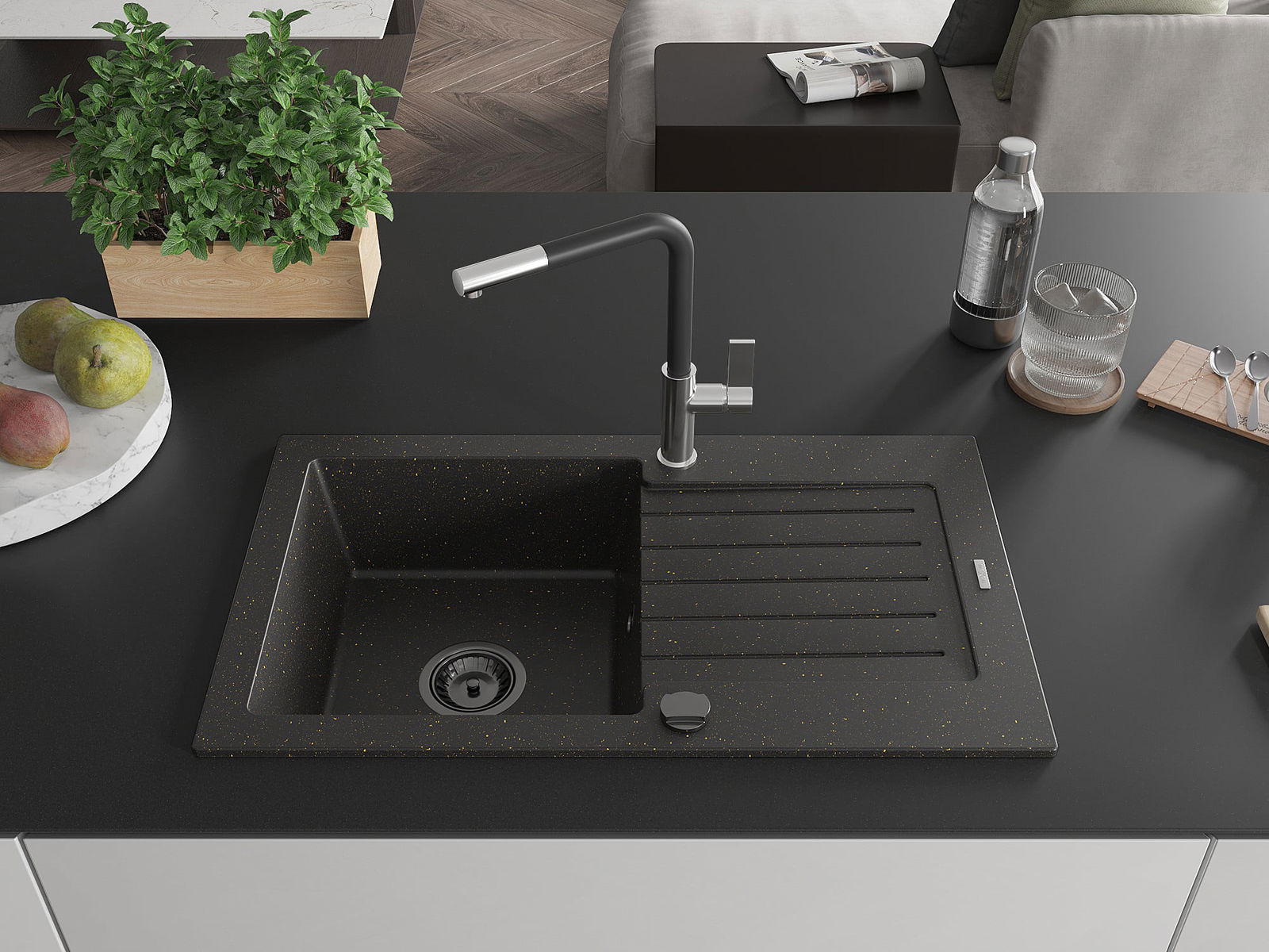 De gootsteen is gemaakt van hoogwaardig graniet. Het vormt een elegante en vooral praktische aanvulling op elke keuken, ongeacht de stijl. De hoge kwaliteit en duurzaamheid van graniet zorgen voor jarenlang gebruik.