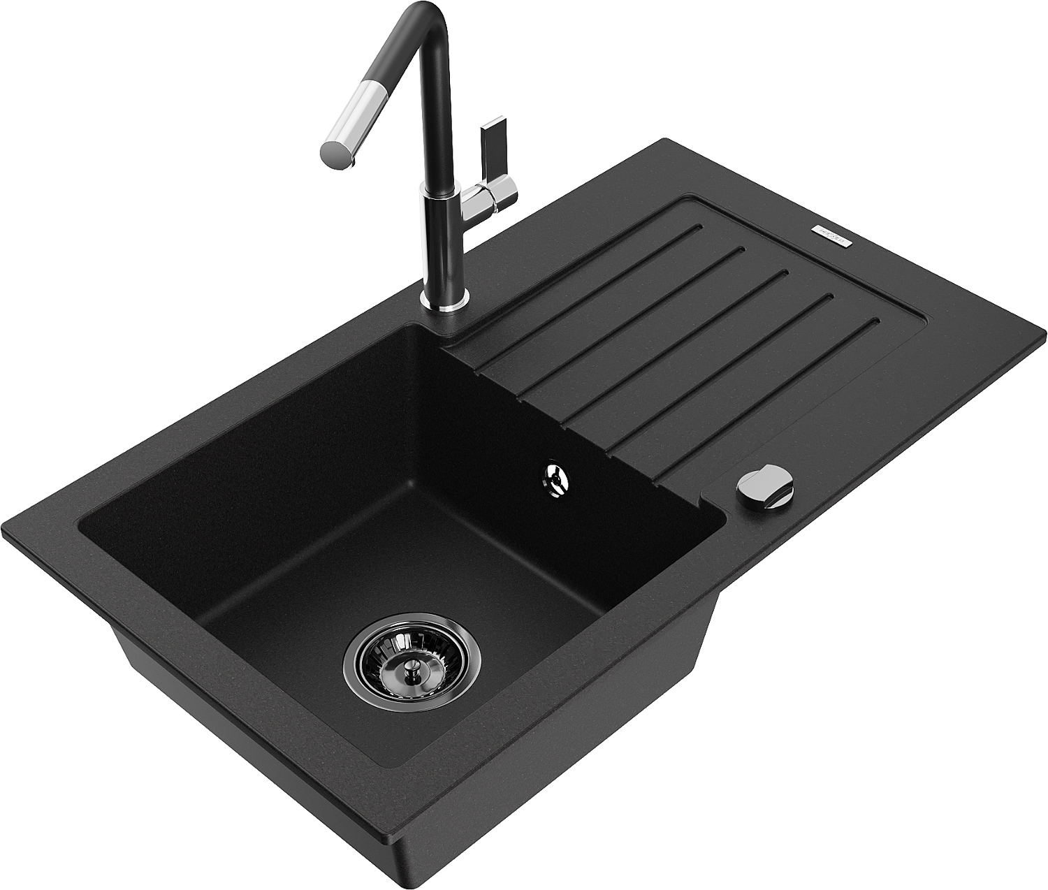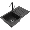 Mexen Pablo granieten spoelbak 1-kompartment met afdruiprek en keukenmengkraan Flora, zwart - 6510-77-670401-07-B