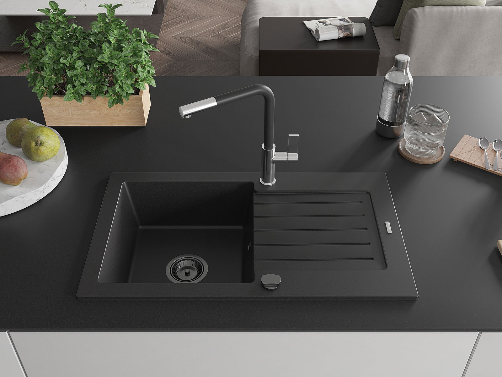 De gootsteen is gemaakt van hoogwaardig graniet. Het vormt een elegante en vooral praktische aanvulling op elke keuken, ongeacht de stijl. De hoge kwaliteit en duurzaamheid van graniet zorgen voor jarenlang gebruik.
