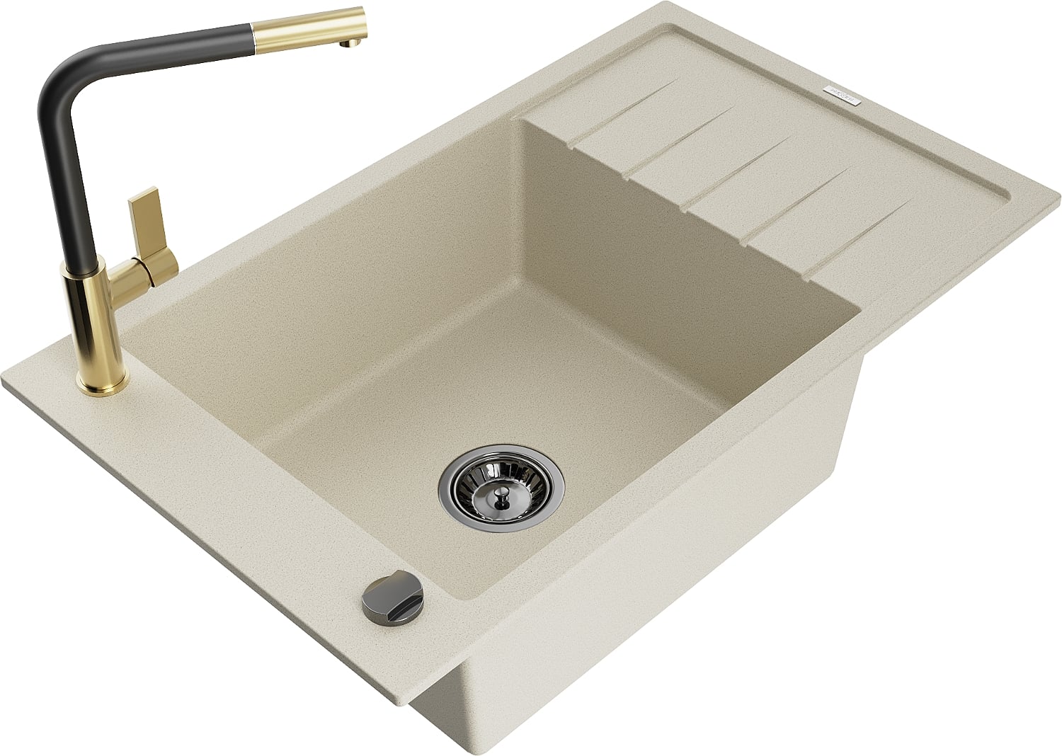 Mexen Elias granieten gootsteen met 1 bak en afdruiprek en keukenmengkraan Flora, beige - 6511-69-670401-57-B