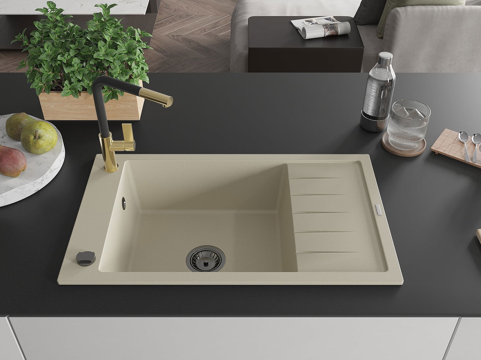 De gootsteen is gemaakt van hoogwaardig graniet. Het vormt een elegante en vooral praktische aanvulling op elke keuken, ongeacht de stijl. De hoge kwaliteit en duurzaamheid van graniet zorgen voor jarenlang gebruik.