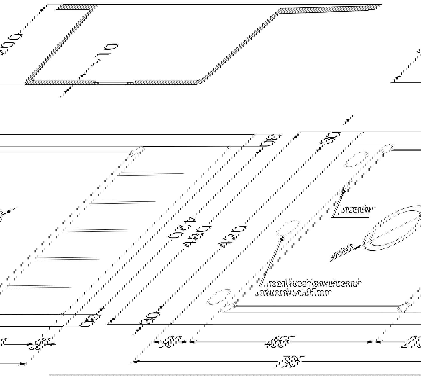 Eén extra voorgesneden gat om zelf ø35 uit te slaan