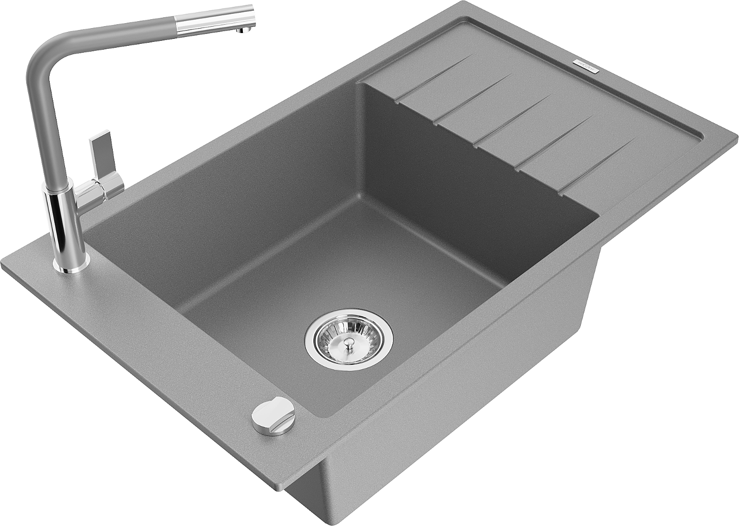 Mexen Elias granieten gootsteen 1-kamer met afdruiprek en keukenkraan Flora, grijs - 6511-71-670401-06