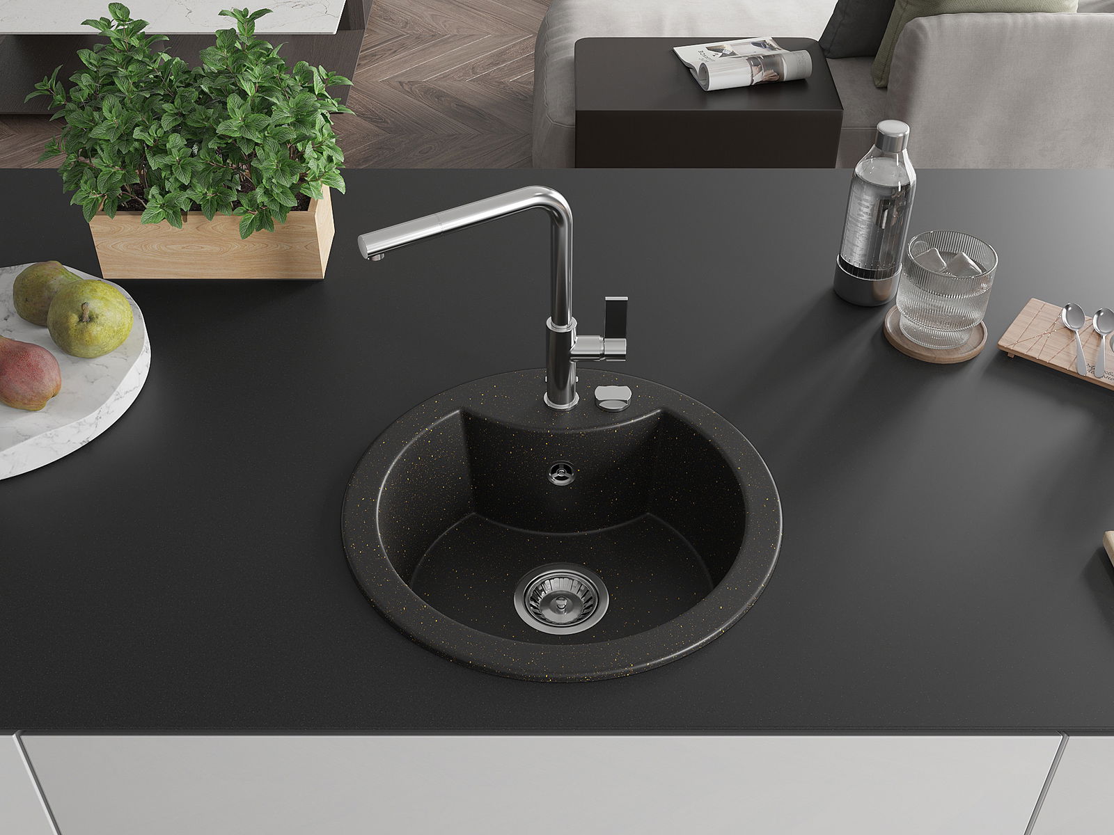 De gootsteen is gemaakt van hoogwaardig graniet. Het vormt een elegante en vooral praktische aanvulling op elke keuken, ongeacht de stijl. De hoge kwaliteit en duurzaamheid van graniet zorgen voor jarenlang gebruik.