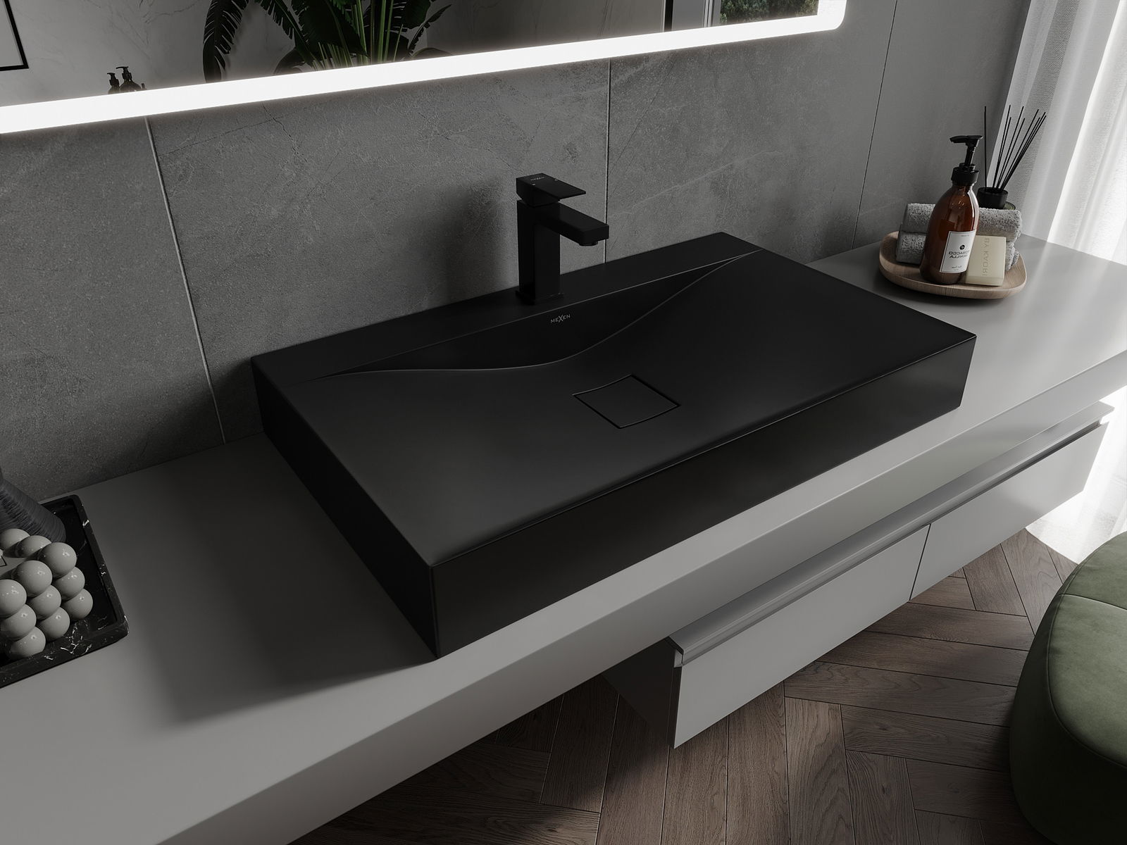 De wastafel heeft een gat waar je een kraan in kunt plaatsen. Dit bespaart kostbare ruimte in de badkamer en verbetert de esthetiek. Deze oplossing maakt het ook gemakkelijker om de ruimte rond de wastafel schoon te houden.