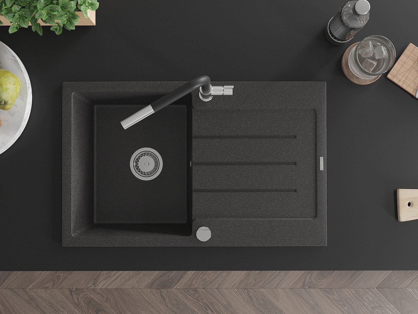 De gootsteen is gemaakt van hoogwaardig graniet. Het vormt een elegante en vooral praktische aanvulling op elke keuken, ongeacht de stijl. De hoge kwaliteit en duurzaamheid van graniet zorgen voor jarenlang gebruik.