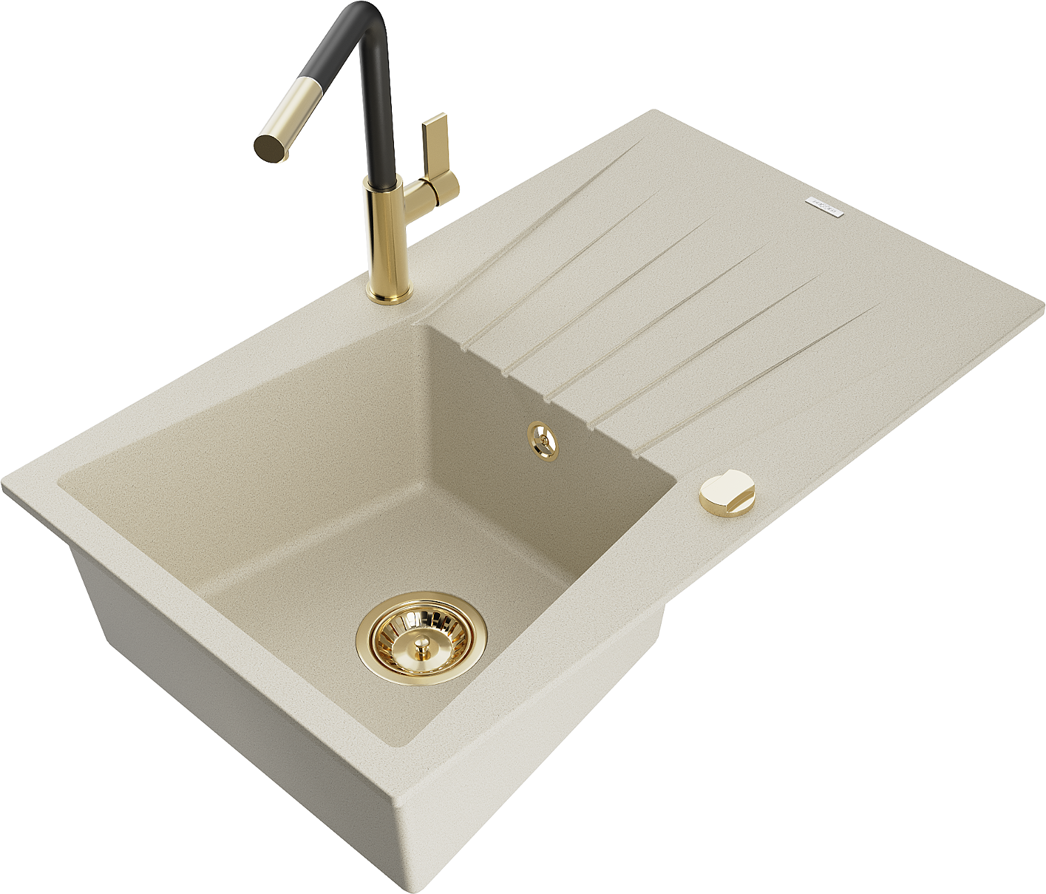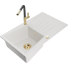 Mexen Cesar granieten spoelbak 1-komerig met afdruiprek en keukenkraan Flora, beige - 6514-69-670401-57-G