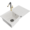 Mexen Cesar granieten spoelbak 1-komors met afdruiprek en keukenkraan Flora, beige - 6514-69-670401-57-B