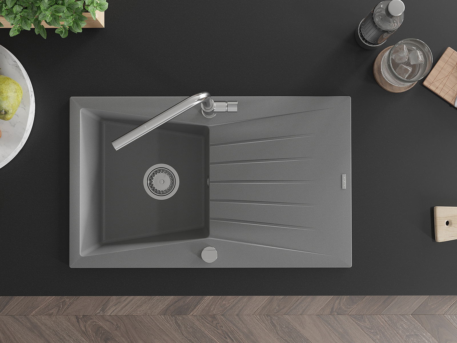 De gootsteen is gemaakt van hoogwaardig graniet. Het vormt een elegante en vooral praktische aanvulling op elke keuken, ongeacht de stijl. De hoge kwaliteit en duurzaamheid van graniet zorgen voor jarenlang gebruik.