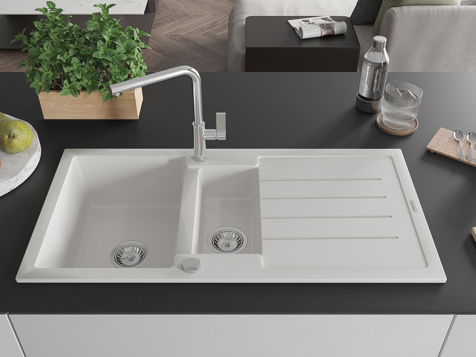 De gootsteen is gemaakt van hoogwaardig graniet. Het vormt een elegante en vooral praktische aanvulling op elke keuken, ongeacht de stijl. De hoge kwaliteit en duurzaamheid van graniet zorgen voor jarenlang gebruik.