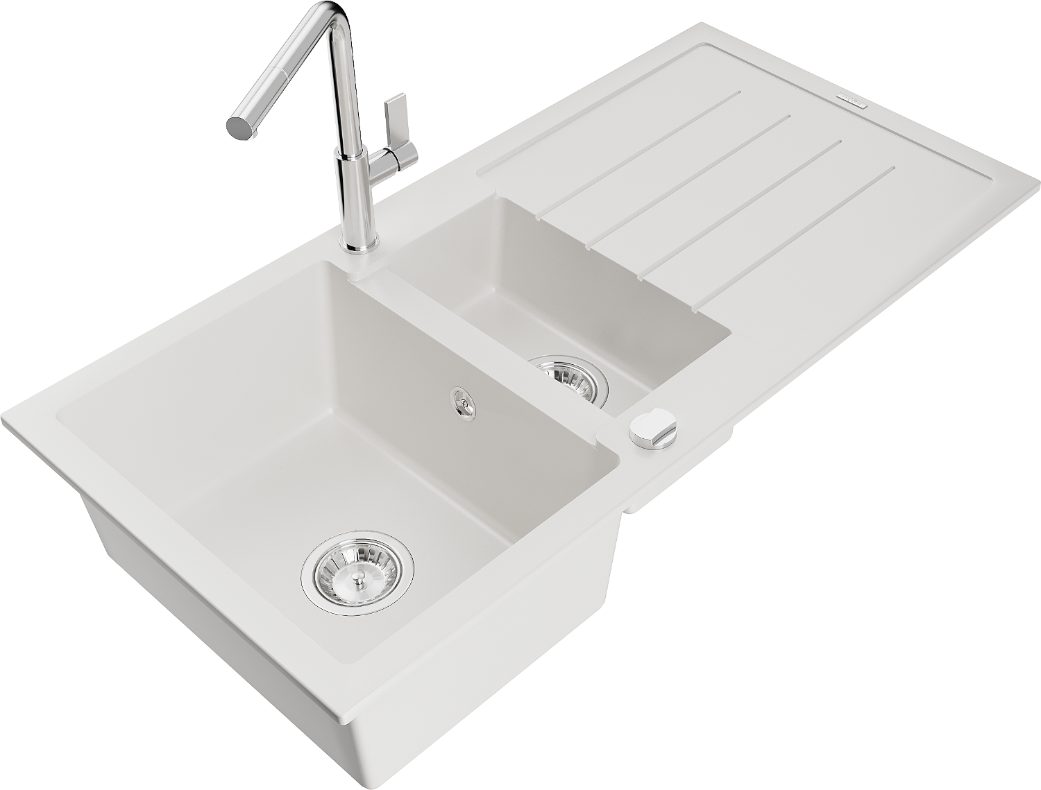 Mexen Andres granieten gootsteen 1,5-bak met afdruiprek en keukenmengkraan Flora, wit - 6515-20-670401-00