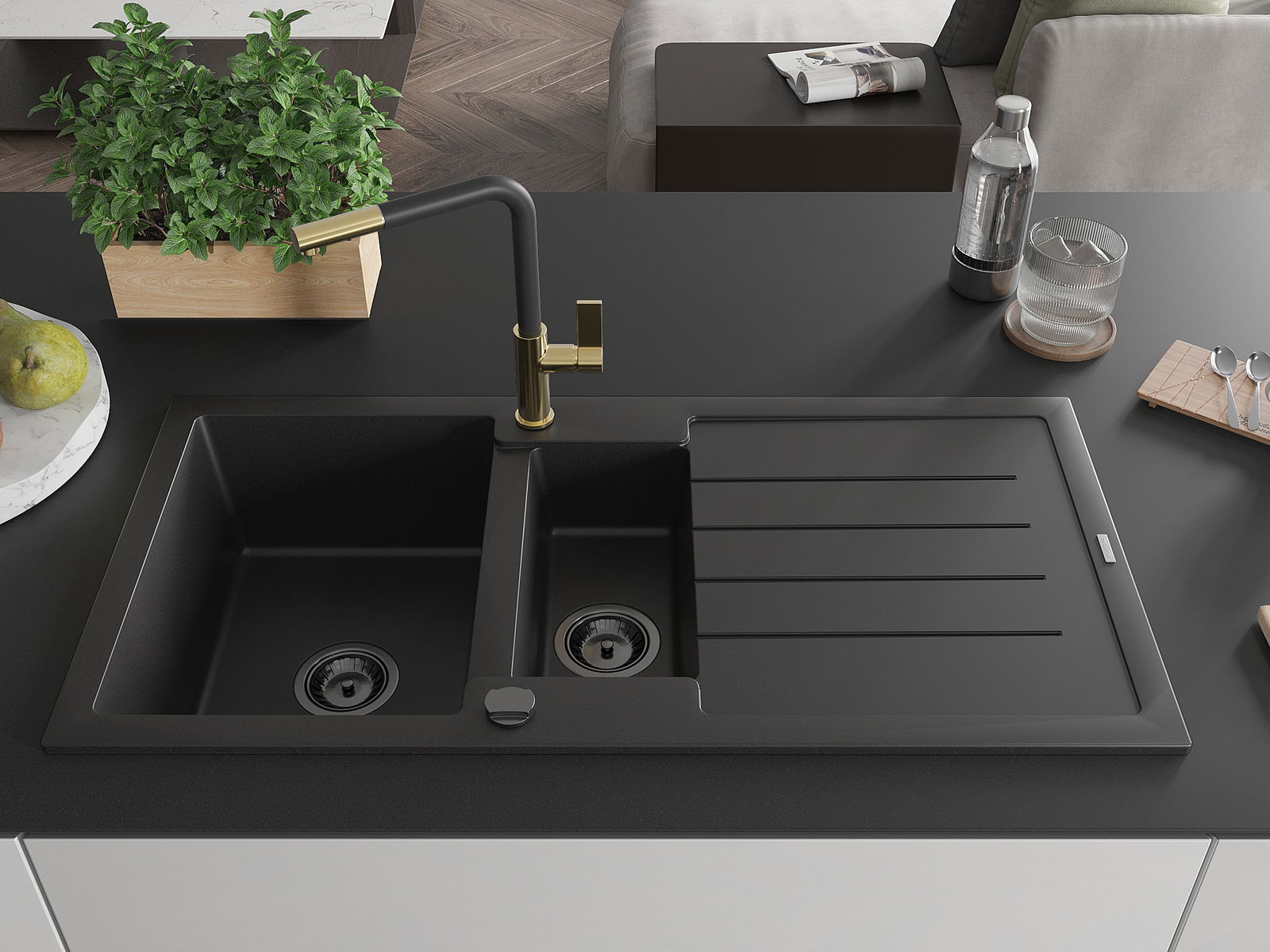 De gootsteen is gemaakt van hoogwaardig graniet. Het vormt een elegante en vooral praktische aanvulling op elke keuken, ongeacht de stijl. De hoge kwaliteit en duurzaamheid van graniet zorgen voor jarenlang gebruik.