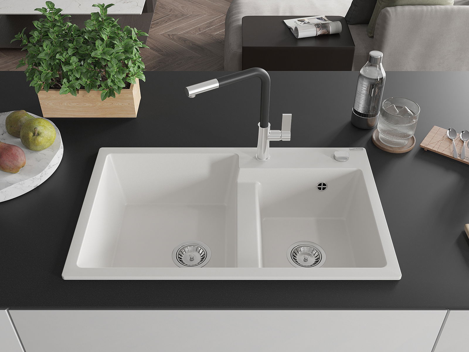 Het oppervlak van de spoelbak is zeer goed gehard en biedt een uitzonderlijke weerstand tegen mechanische beschadigingen en krassen. Het duurzame materiaal zorgt ervoor dat u jarenlang van zijn mooie uiterlijk kunt genieten.