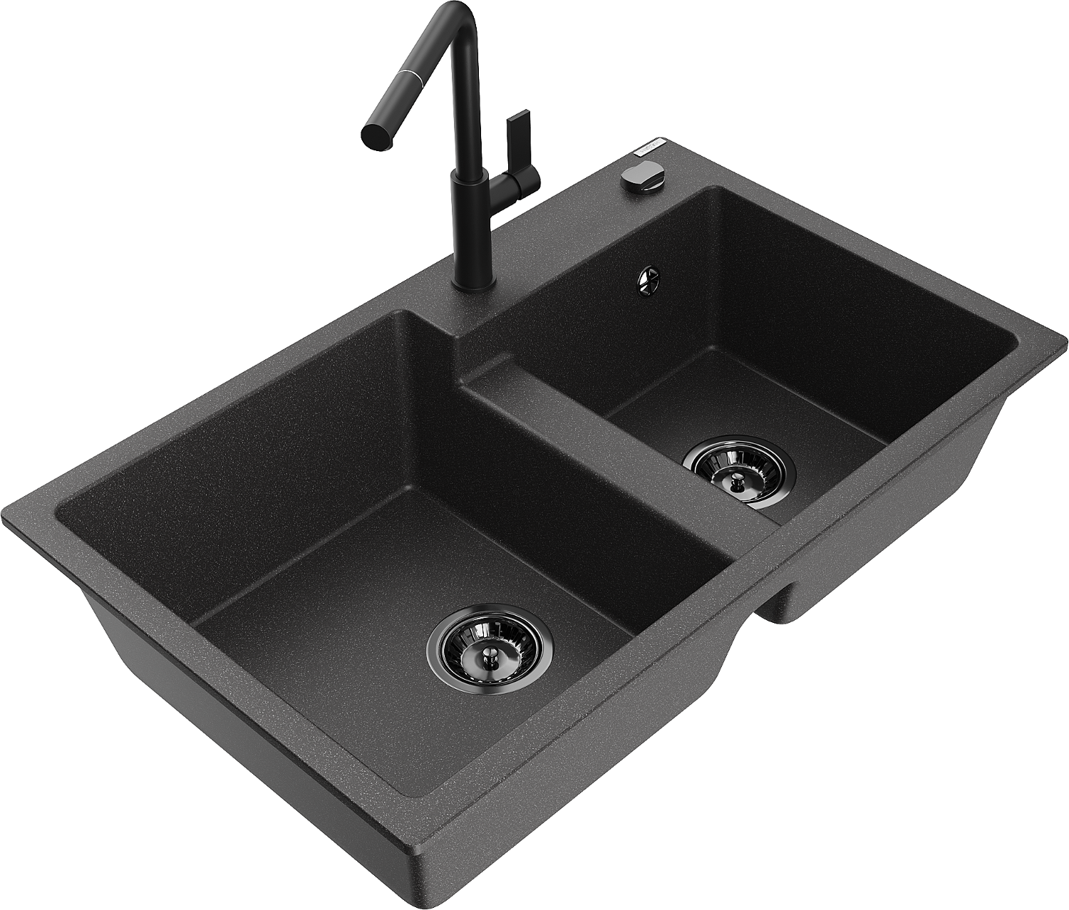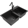 Mexen Tomas granieten gootsteen met 2 kommen en keukenmengkraan Flora, zwart gespikkeld - 6516-76-670401-70-B