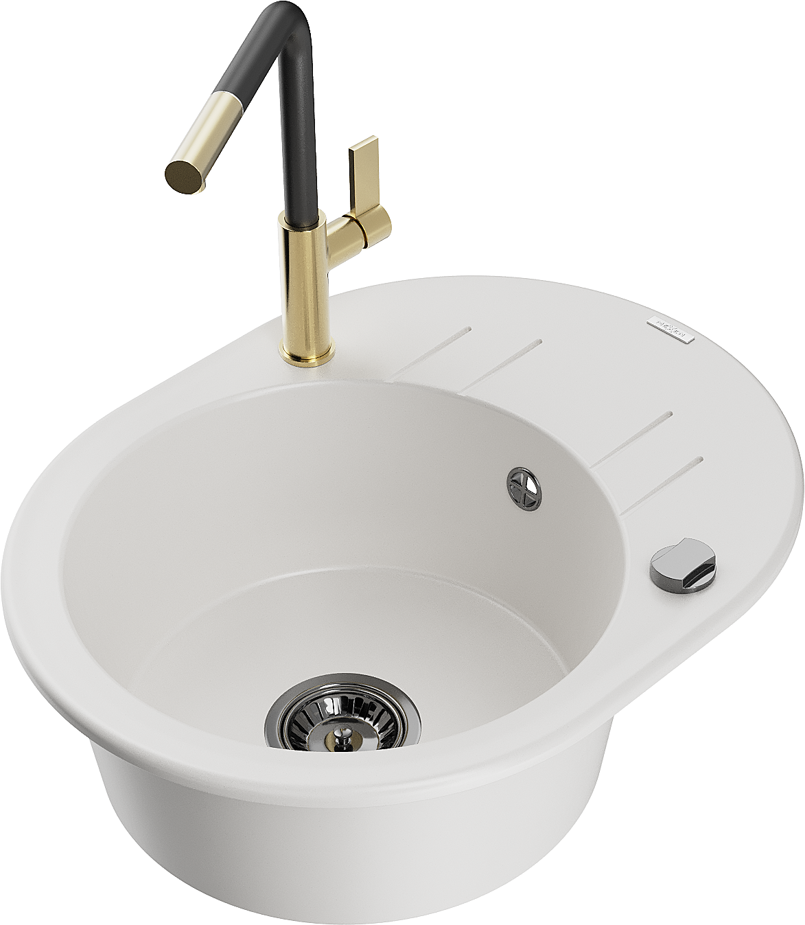 Mexen Kevin granieten spoelbak 1-kamer met afdruiprek en keukenmengkraan Flora, wit - 6517-20-670401-57-B