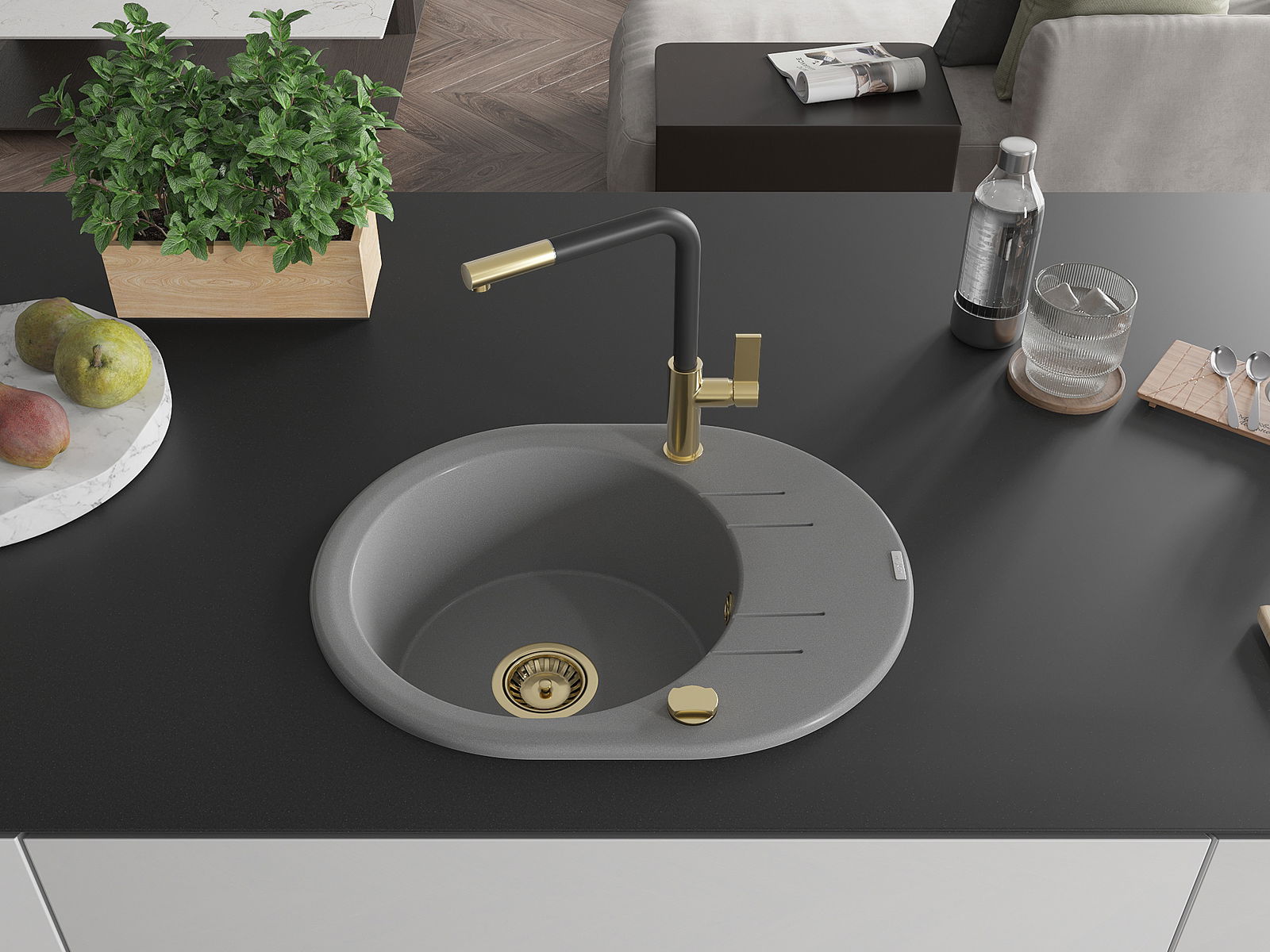 De gootsteen is gemaakt van hoogwaardig graniet. Het vormt een elegante en vooral praktische aanvulling op elke keuken, ongeacht de stijl. De hoge kwaliteit en duurzaamheid van graniet zorgen voor jarenlang gebruik.