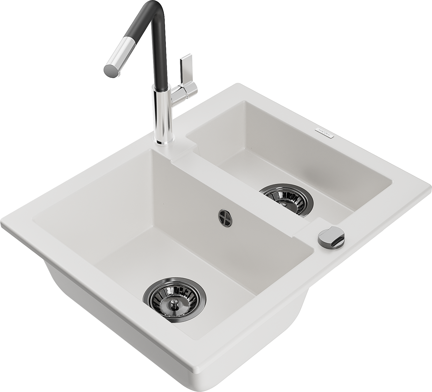 Mexen Carlos granieten spoelbak 1,5-komorige met keukenkraan Flora, wit - 6518-20-670401-07-B