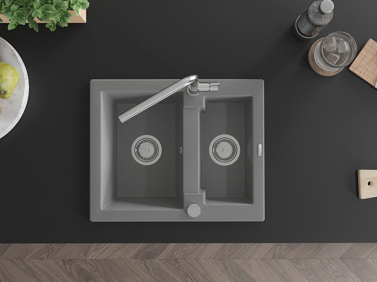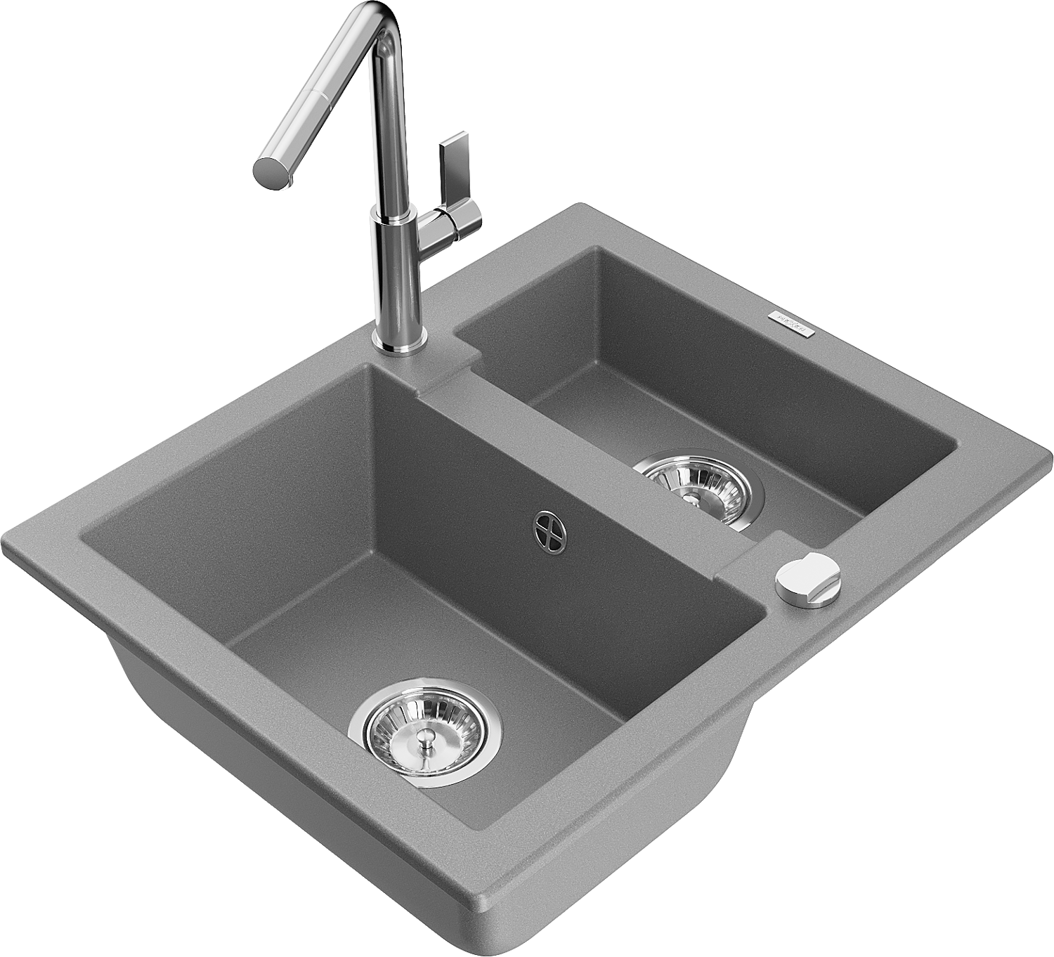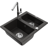 Mexen Carlos granieten gootsteen 1,5-komorige met keukenkraan Flora, grijs - 6518-71-670401-00