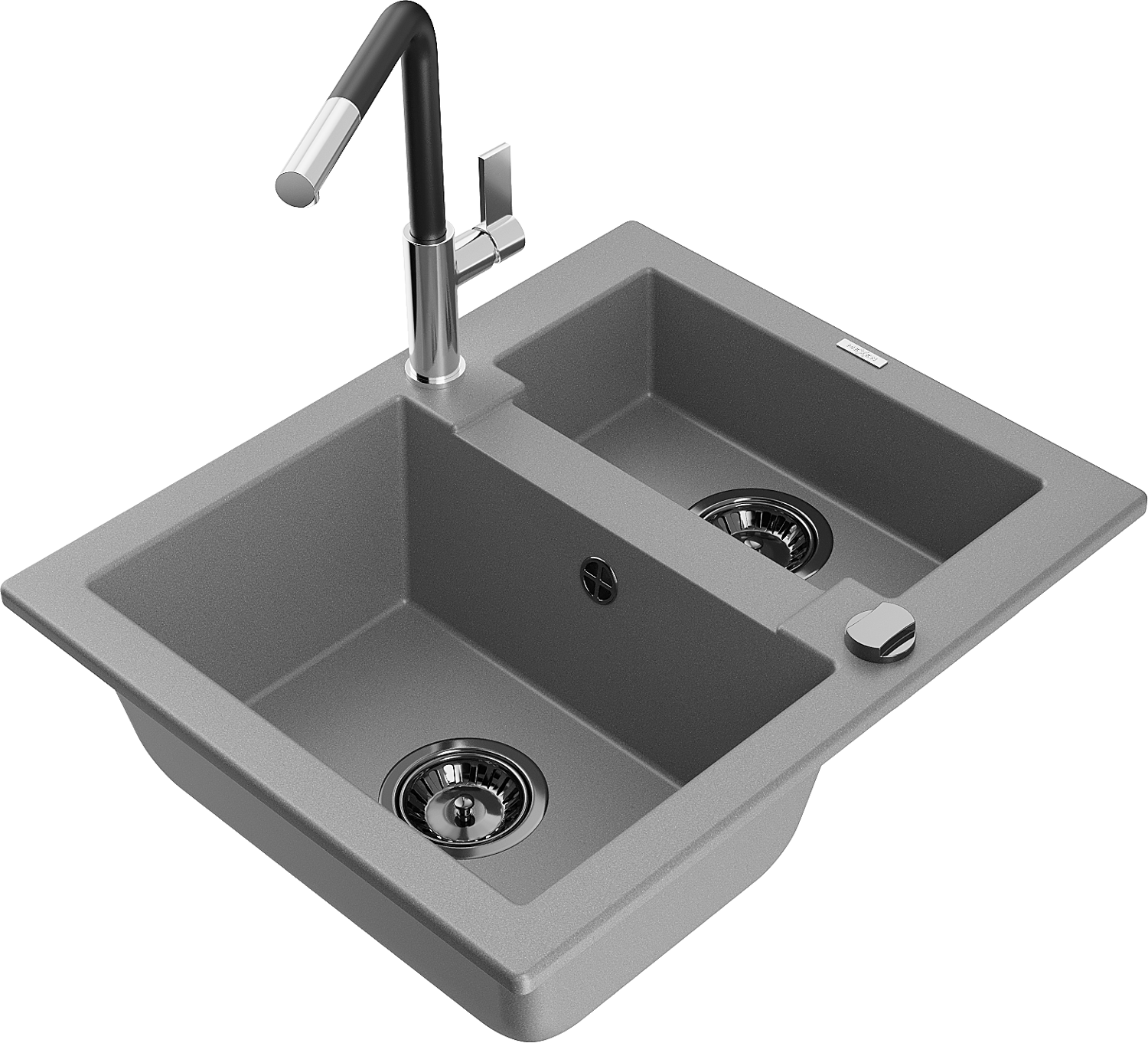 Mexen Carlos granieten spoelbak 1,5-komorige met keukenkraan Flora, grijs - 6518-71-670401-07-B