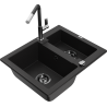 Mexen Carlos granieten spoelbak 1,5-kamerig met keukenkraan Flora, zwart gespikkeld - 6518-76-670401-07-B