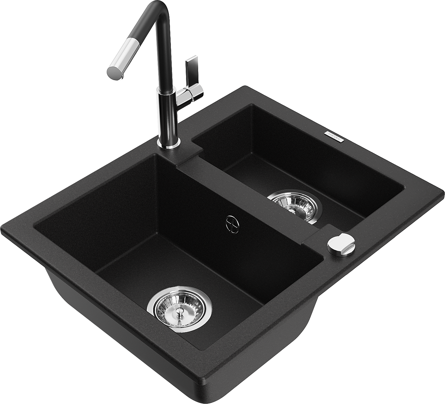 Mexen Carlos granieten gootsteen 1,5-bakkenset met keukenmengkraan Flora, zwart - 6518-77-670401-07
