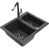 Mexen Carlos granieten gootsteen met 1,5 kom met keukenmengkraan Flora, zwart - 6518-77-670401-57-B