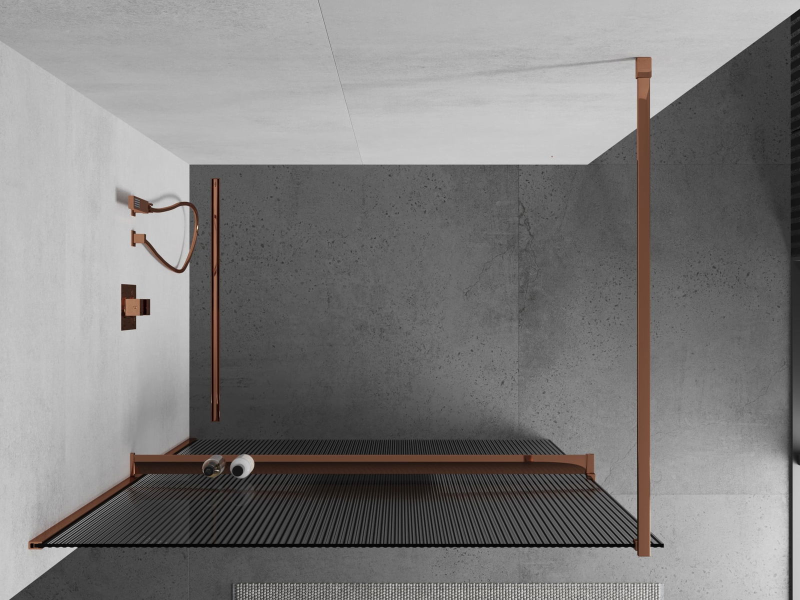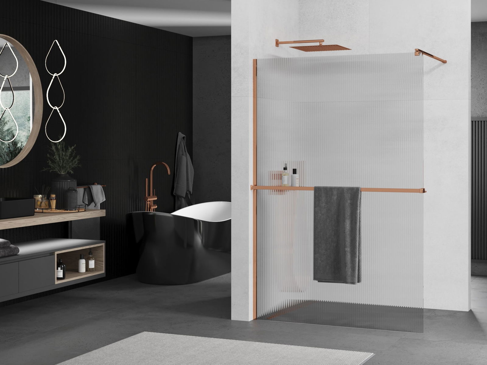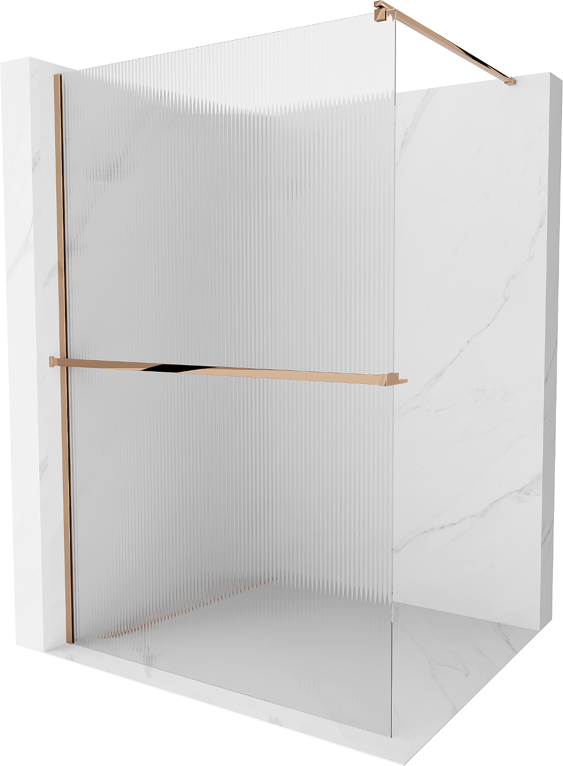 Mexen Kioto+ douchewand met plank Walk-in 70 x 200 cm, strepen, roze goud - 800-070-121-60-09