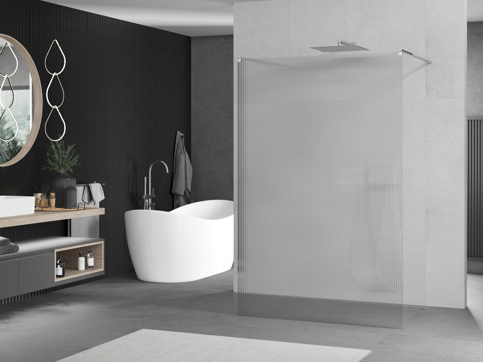 Mexen Kioto vrijstaande douchewand 120 x 200 cm, strepen 8 mm, chroom - 800-120-002-01-09