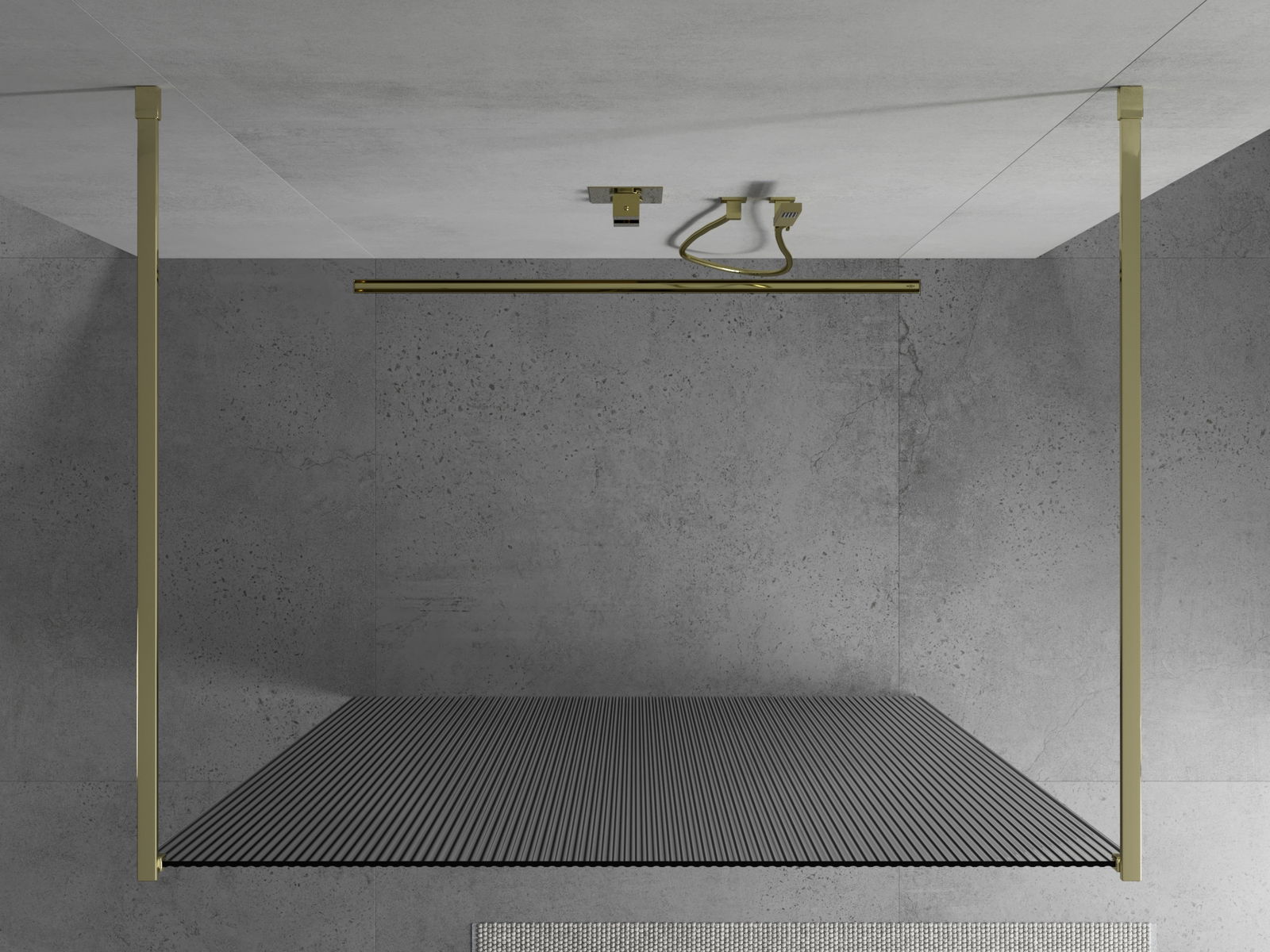 Mexen Kioto vrijstaande douchescherm 130 x 200 cm, gestreept 8 mm, goud - 800-130-002-50-09
