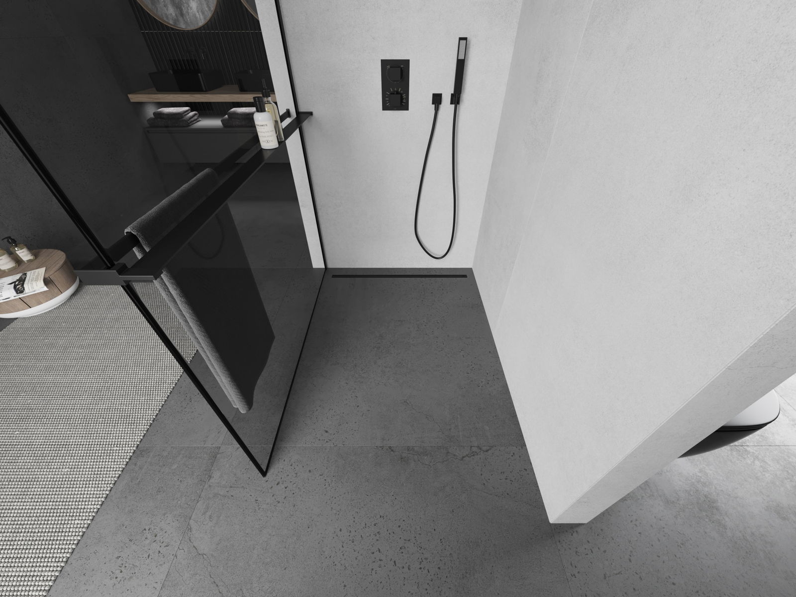 Mexen Kioto+ douchewand met plank Walk-in 140 x 200 cm, zwart frame, zwart - 800-140-121-70-70