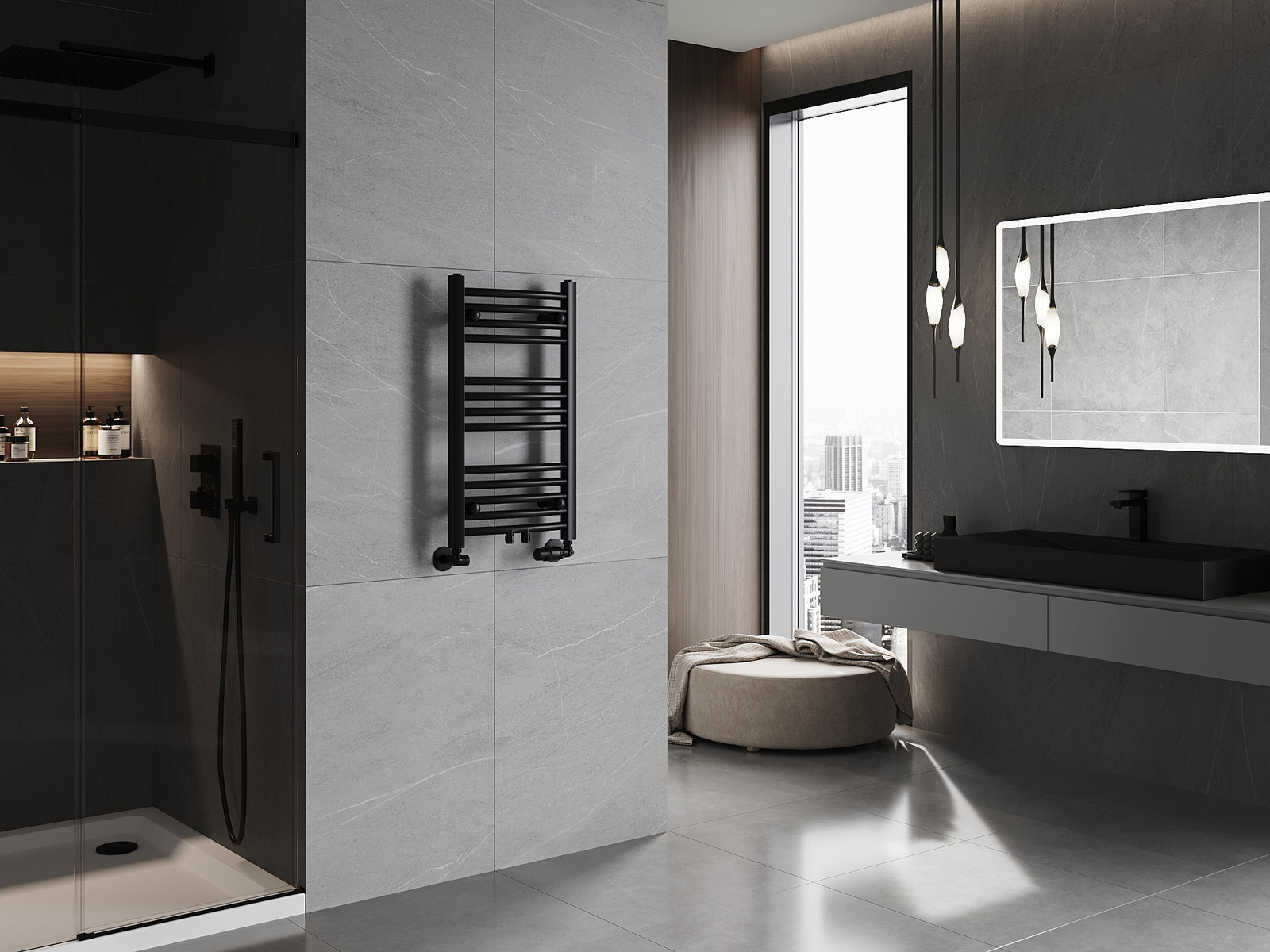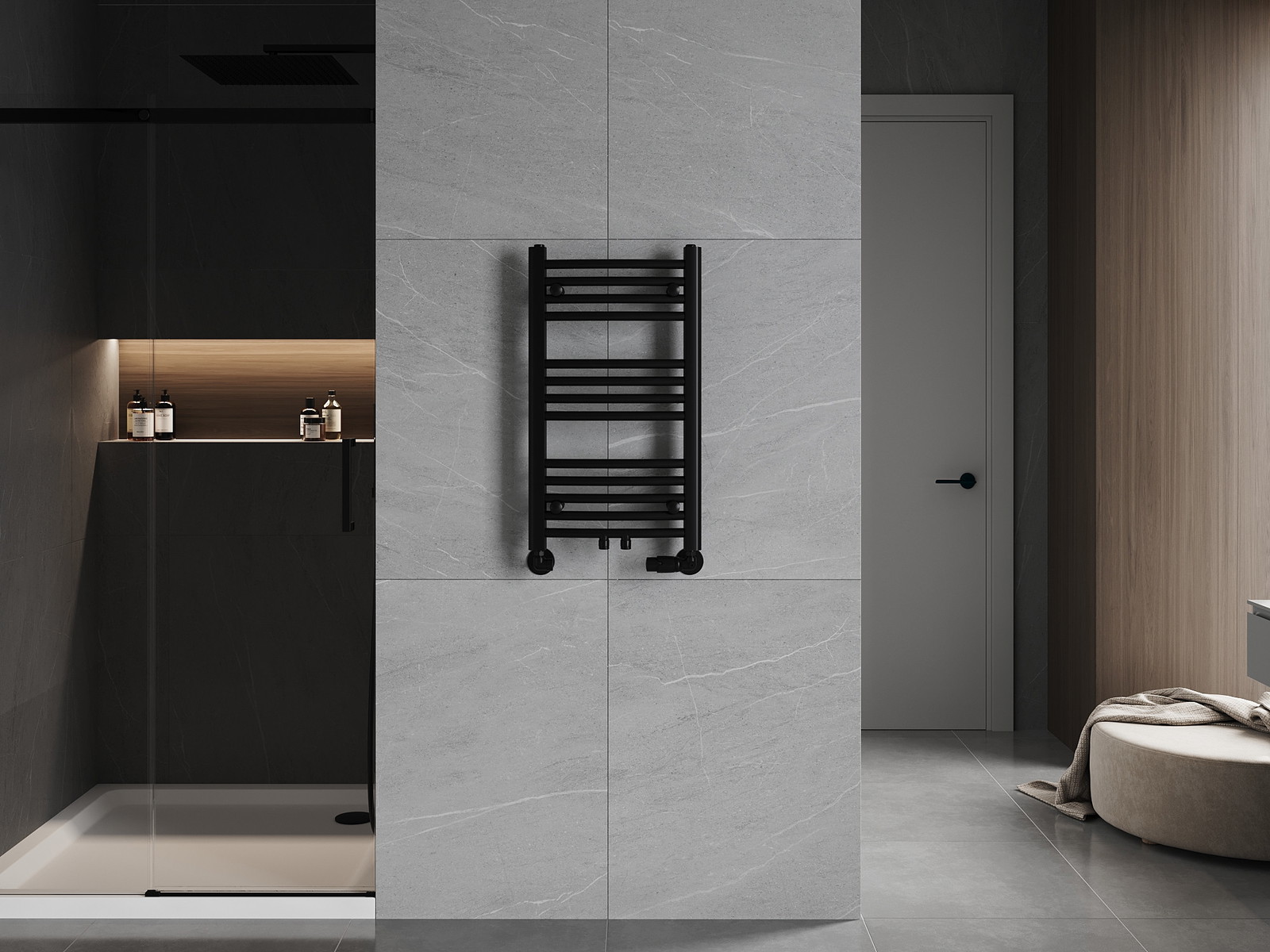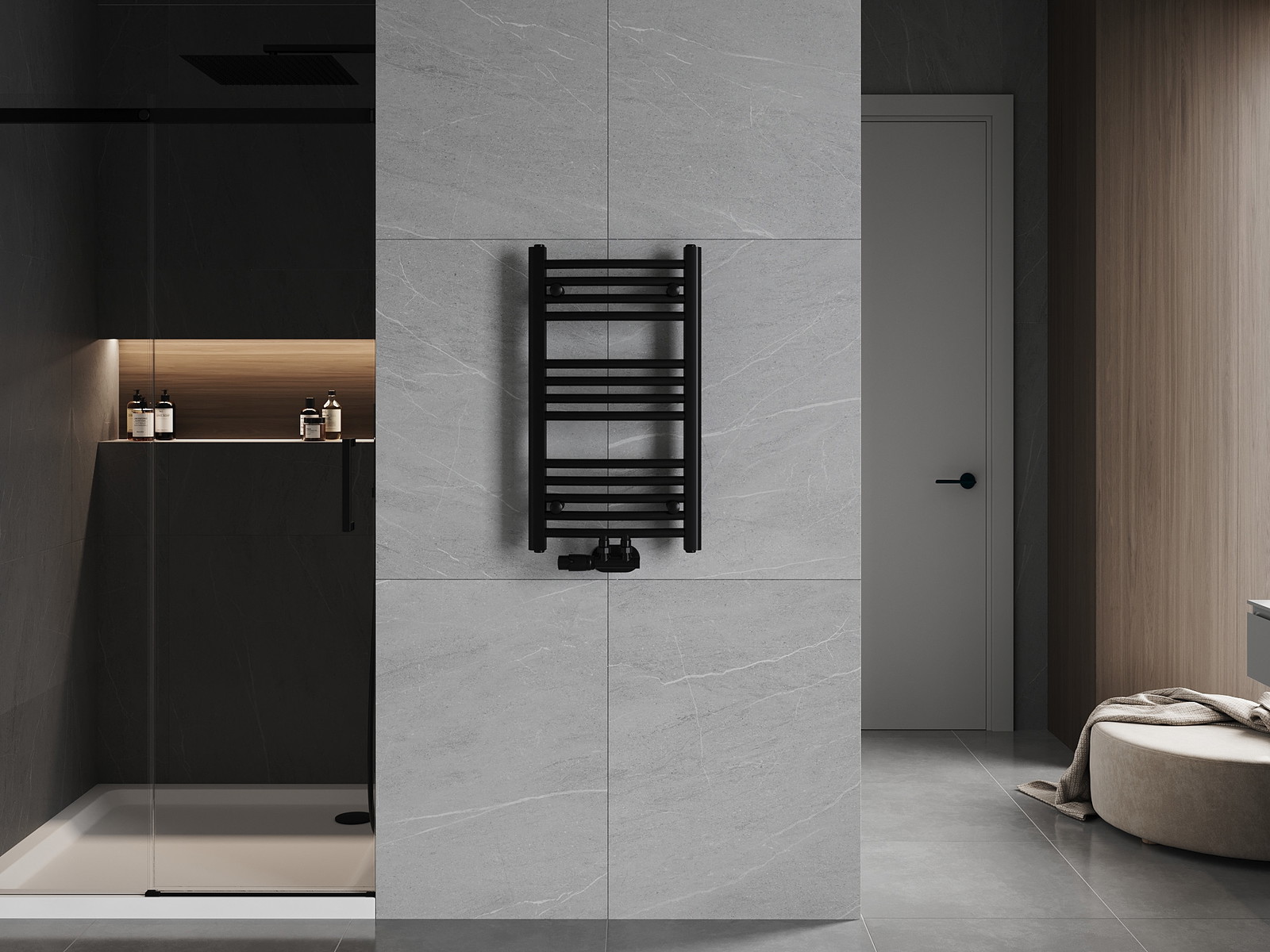 De Mexen Ares badkamer radiator is de perfecte oplossing voor iedereen die op zoek is naar efficiënte en stijlvolle verwarming. Met een vermogen van 240 W en afmetingen van 700 x 400 mm zorgt het voor de ideale temperatuur in de badkamer. Gemaakt van hoogwaardig staal en bedekt met een duurzame, corrosiebestendige coating, garandeert het langdurig gebruik. De zwarte kleur RAL 9005 voegt elegantie toe en de mogelijkheid om een verwarmingselement te monteren en verschillende aansluitingen vergroten zijn functionaliteit. Inclusief ophangbeugels, montagekit en ontluchter.