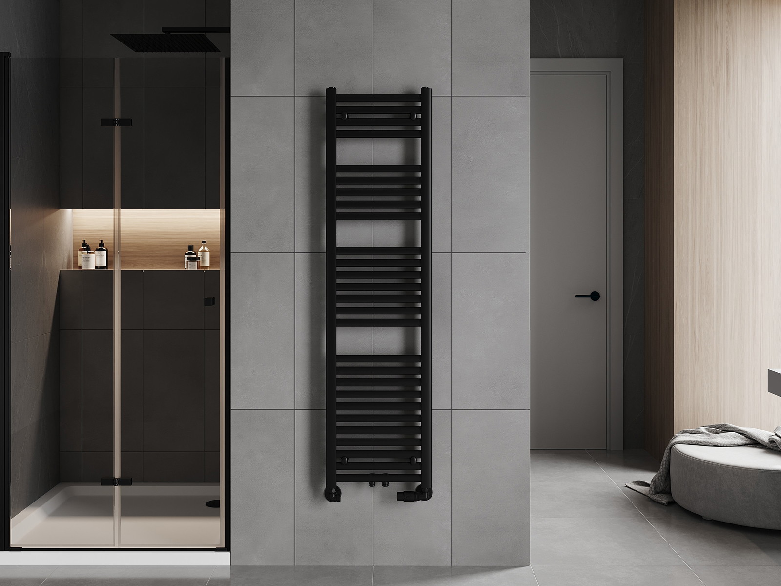 De Mexen Hades badkamer radiator onderscheidt zich door zijn moderne ontwerp en hoge efficiëntie. Het biedt een verwarmingsvermogen van 583 W bij afmetingen van 1500 x 400 mm, waardoor het ideaal is voor elke badkamer. Het product is gemaakt van corrosiebestendig staal en heeft een stijlvolle zwarte kleur RAL 9005. Dankzij de verschillende aansluitmogelijkheden en de maximale werktemperatuur tot 95°C biedt de Mexen Hades flexibiliteit bij de installatie en snelle en efficiënte verwarming van de ruimte. Alle noodzakelijke montageaccessoires zijn inbegrepen.