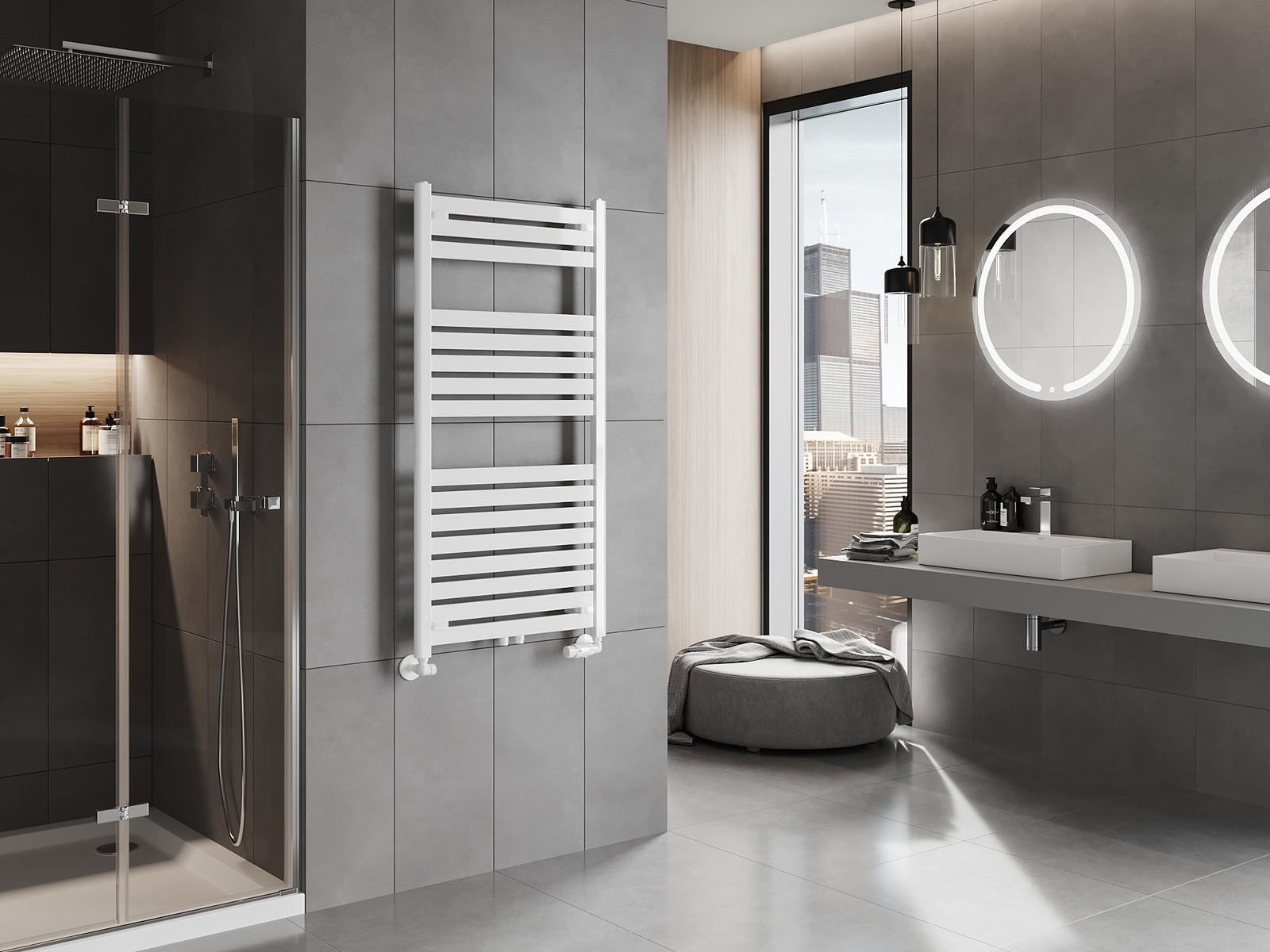 De Mexen Uran badkamerradiator is de ideale oplossing voor iedereen die functionaliteit en elegantie waardeert. Met een hoogte van 1200 mm en een breedte van 600 mm levert hij een verwarmingsvermogen van 623 W bij een temperatuurverschil van 75/65/20 °C, waardoor uw badkamer altijd warm blijft. De witte kleur RAL 9016 past perfect bij een modern interieur. Gemaakt van staal, is hij zeer goed bestand tegen corrosie en duurzaam, waardoor hij jarenlang meegaat. Het product biedt verschillende aansluitopties en de mogelijkheid om een verwarmingselement te monteren, wat zijn veelzijdigheid vergroot. Zijn hoge kwaliteit en duurzame laklaag maken hem bestand tegen vuur (reactie op vuur: A1) en goed bestand tegen de maximale bedrijfstemperatuur tot 95 °C en maximale werkdruk van 0,4 Mpa. De set bevat ophangingen, een montageset, afsluitdoppen en een ontluchter, wat de installatie vergemakkelijkt.