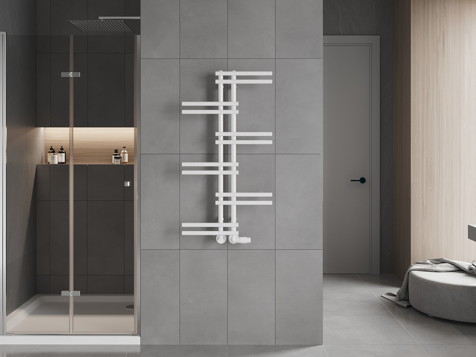 Mexen Jari is een decoratieve badkamer radiator die functionaliteit perfect combineert met een elegant design. Het biedt een verwarmingsvermogen van 339 W, wat zorgt voor thermisch comfort in elke badkamer. De radiator met afmetingen van 1005 x 550 mm, gemaakt van hoogwaardig staal, is bedekt met een duurzame, corrosiebestendige laklaag. De witte kleur (RAL 9016) past perfect in moderne interieurs. Dankzij de mogelijkheid om een element te monteren en de weerstand tegen hoge temperaturen (max 95 °C), is het product praktisch en veilig. De set bevat alle noodzakelijke montagematerialen.