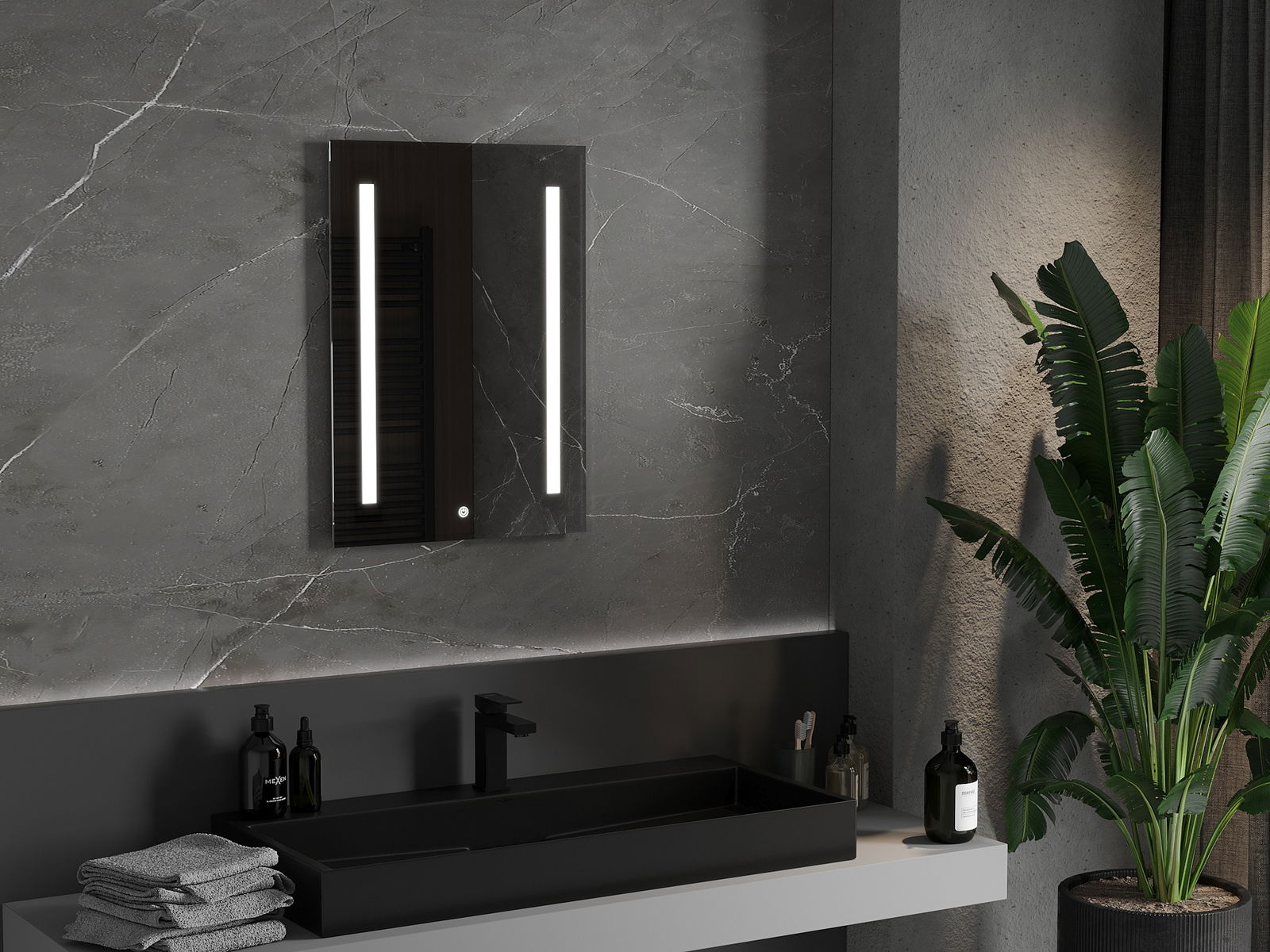 De spiegelverlichting kan eenvoudig en comfortabel worden geactiveerd door de schakelaar op het spiegeloppervlak aan te raken. Dit zorgt voor snelle verlichting zonder dat u naar een traditionele lichtschakelaar op afstand hoeft te reiken.