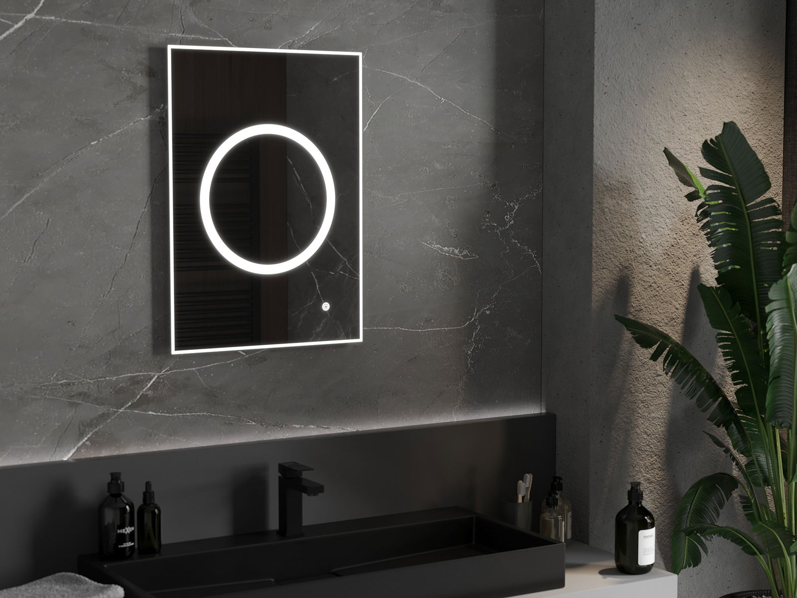 De verlichting van de spiegel kan op een eenvoudige en handige manier worden ingeschakeld door de schakelaar op het spiegelglas aan te raken. Dit maakt het mogelijk om snel extra verlichting te krijgen zonder de traditionele lichtschakelaar op afstand te hoeven gebruiken.