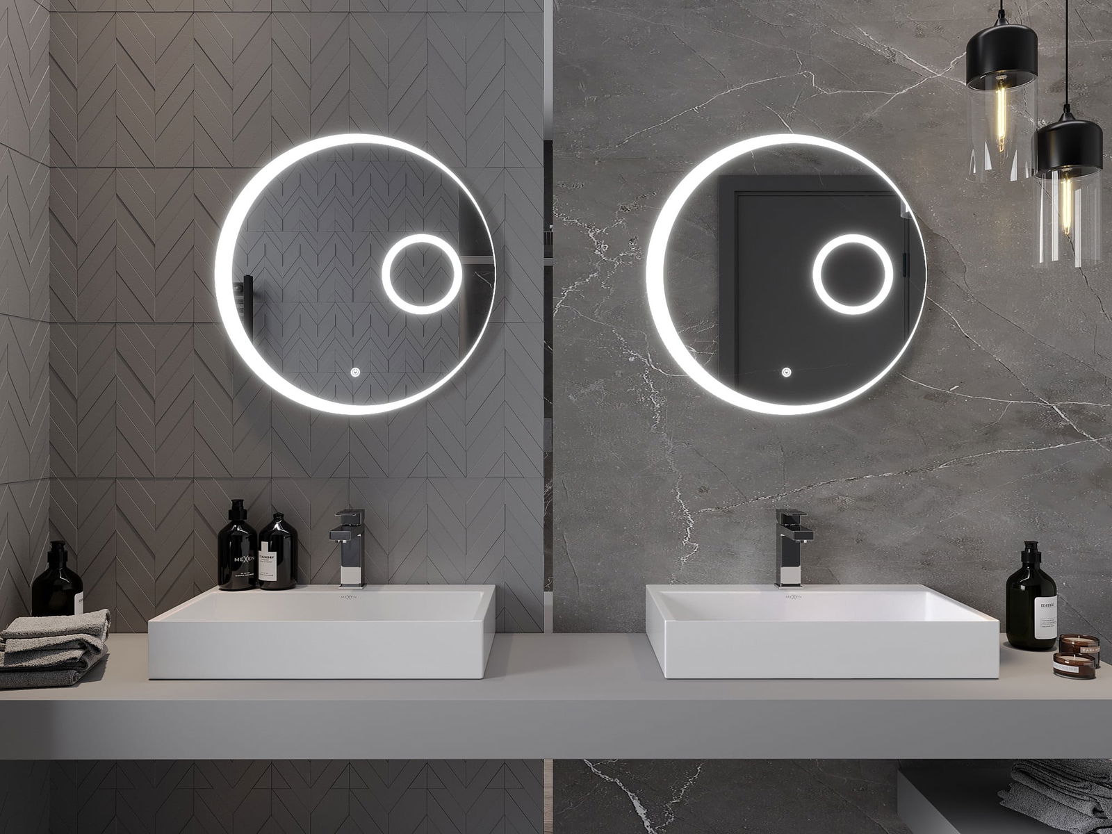 De verlichting van de spiegel kan op een eenvoudige en handige manier worden ingeschakeld door de schakelaar op het spiegelglas aan te raken. Dit maakt het mogelijk om snel extra verlichting te krijgen zonder de traditionele lichtschakelaar op afstand te hoeven gebruiken.
