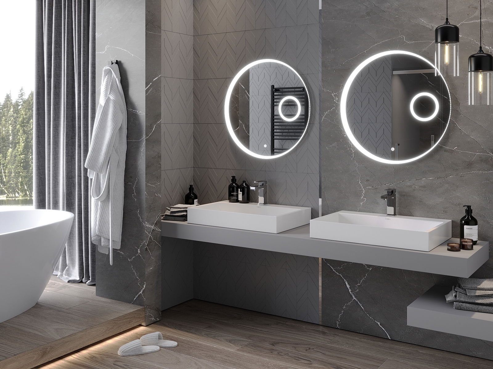 LED-verlichting op de spiegel is een praktisch element dat de dagelijkse verzorging vergemakkelijkt door het gezicht perfect te verlichten. Het voegt een moderne touch toe aan de badkamer en benadrukt de elegante inrichting.