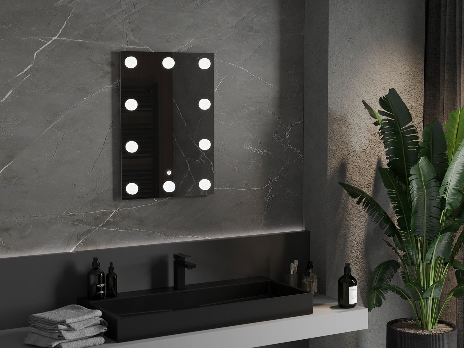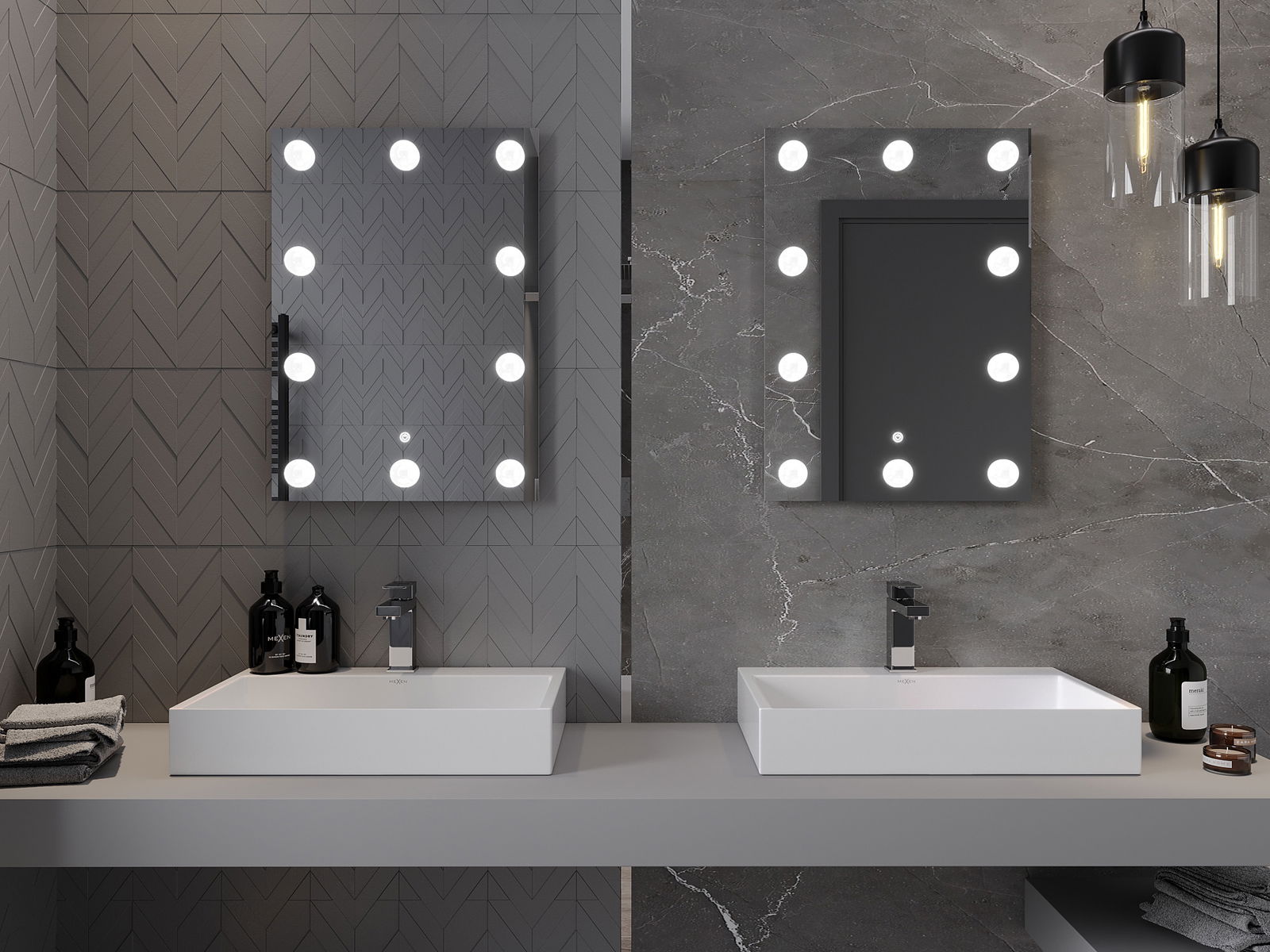 De verlichting van de spiegel kan op een eenvoudige en handige manier worden ingeschakeld door de schakelaar op het spiegelglas aan te raken. Dit maakt het mogelijk om snel extra verlichting te krijgen zonder de traditionele lichtschakelaar op afstand te hoeven gebruiken.