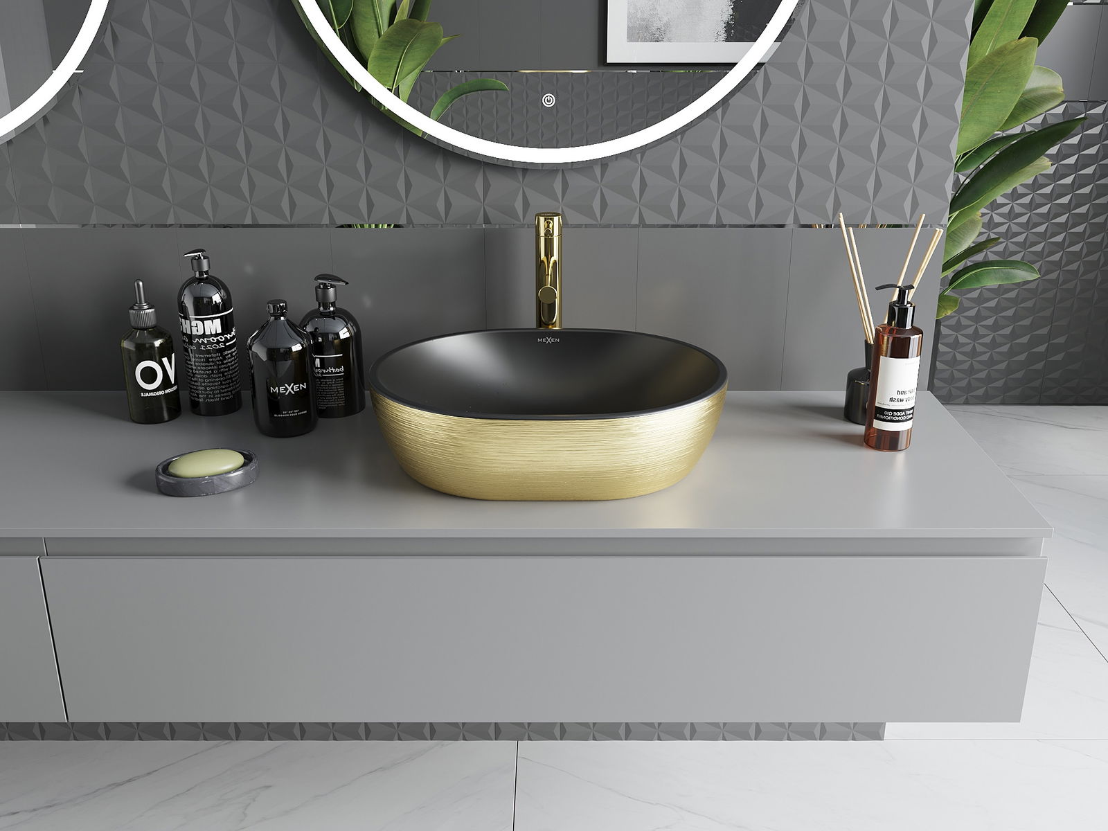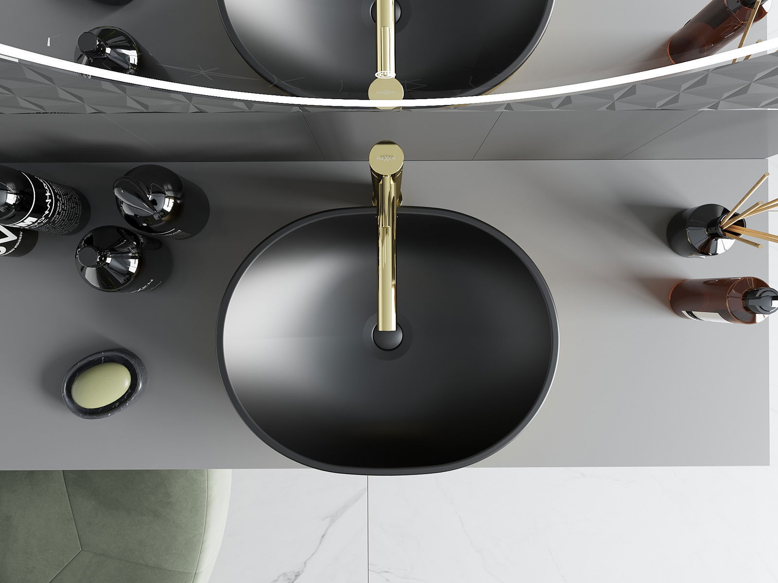 De opzetwastafel is een ideale oplossing voor moderne interieurs. Met afmetingen van 48x35 cm en een diepte van 11,5 cm is hij perfect voor elke badkamer. Het elegante zwarte matte oppervlak met gouden lijnpatroon combineert stijl en functionaliteit. Gemaakt van hoogwaardig sanitair keramiek, is de wastafel niet alleen esthetisch maar ook duurzaam. Zonder kraan- en overloopgaten presenteert het een minimalistisch design dat het karakter van uw ruimte benadrukt.
