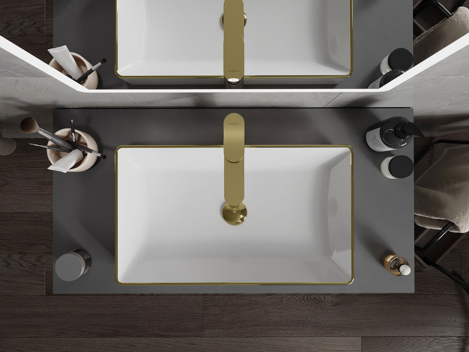Mexen Nadia opbouw wastafel 62 x 35 cm, wit/gouden rand - 21616005