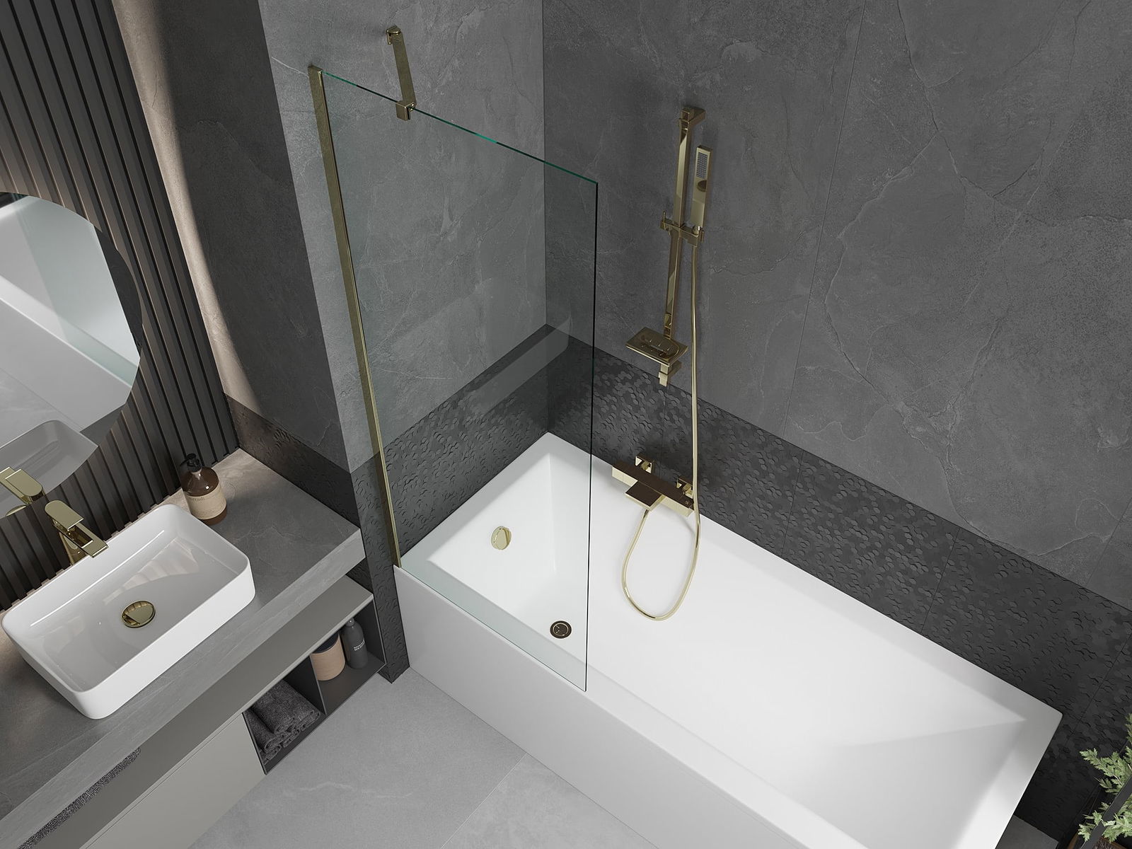 Mexen Cubik rechthoekig bad 170 x 70 cm met ombouw en 1-vleugelig scherm 70 cm, transparant, goud - 550317070X9507000050
