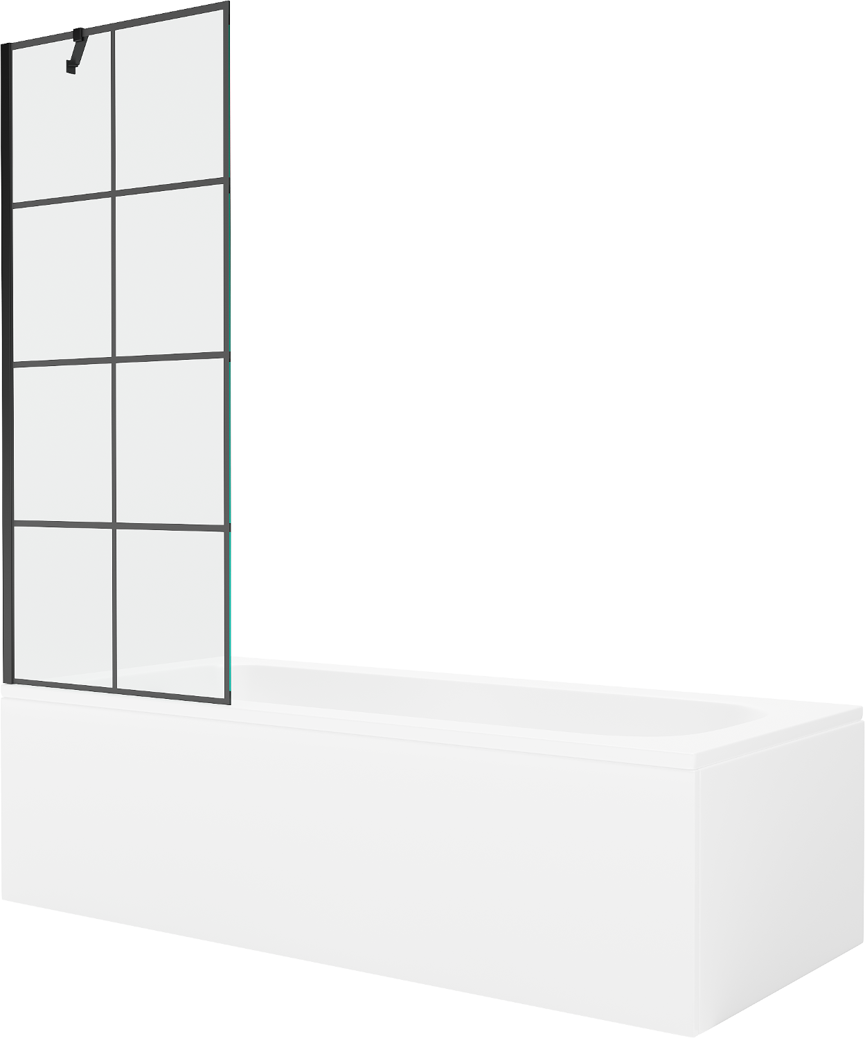 Mexen Vega rechthoekig ligbad 150 x 70 cm met omkasting en 1-vleugelig scherm 70 cm, zwart patroon - 550115070X9507007077