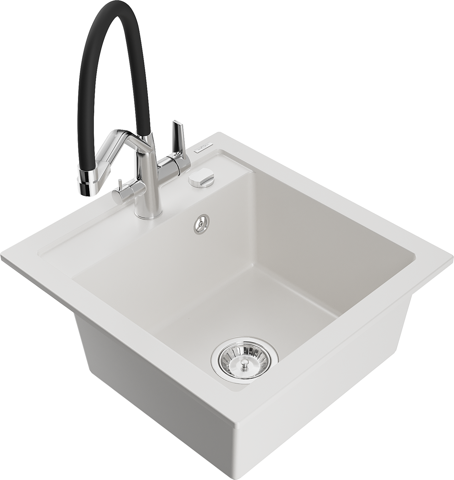 Mexen Vito granieten spoelbak 1-komerig met keukenkraan Duo, wit - 6503-20-671701-07
