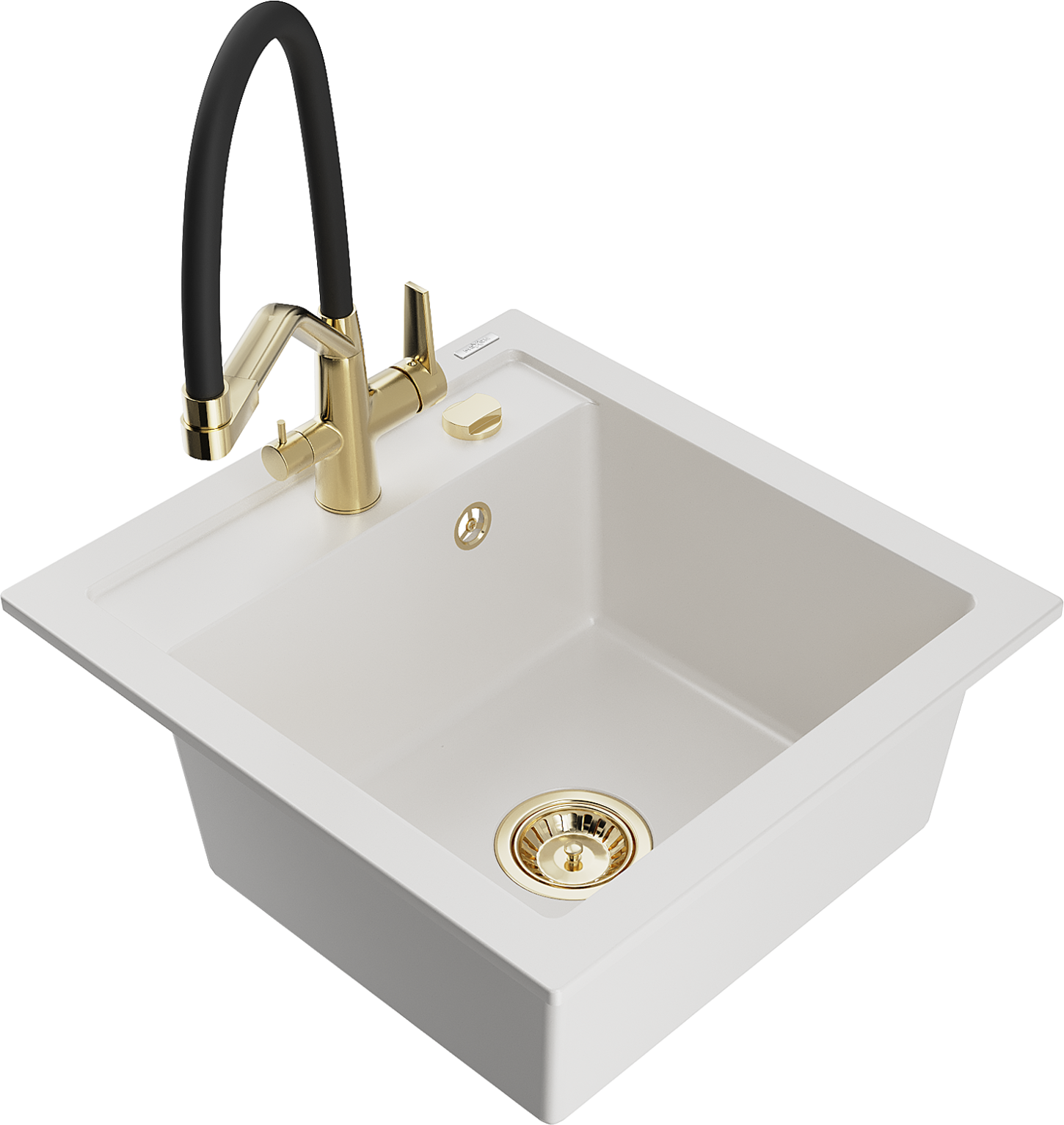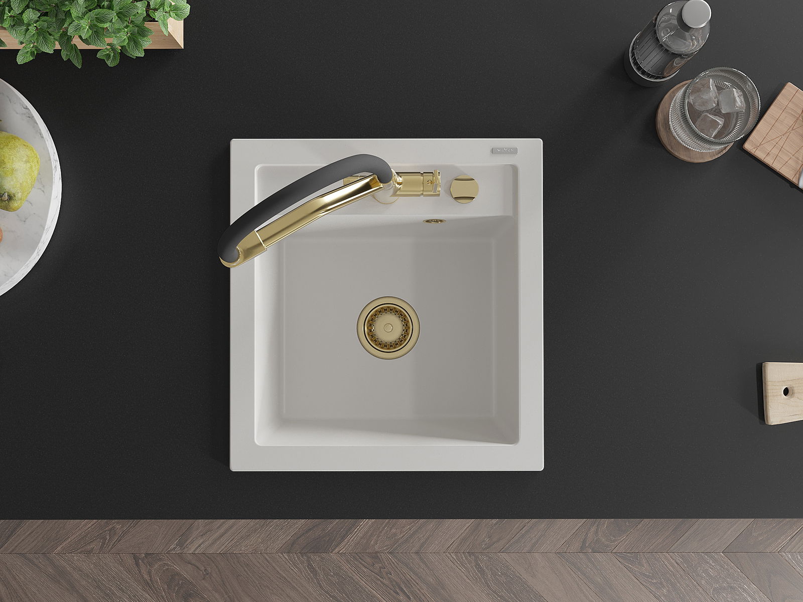 Mexen Vito granieten gootsteen 1-komerig met keukenkraan Duo, wit - 6503-20-671701-57-G