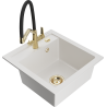Mexen Vito granieten gootsteen met 1 bak en Duo keukenmengkraan, beige - 6503-69-671701-57-G