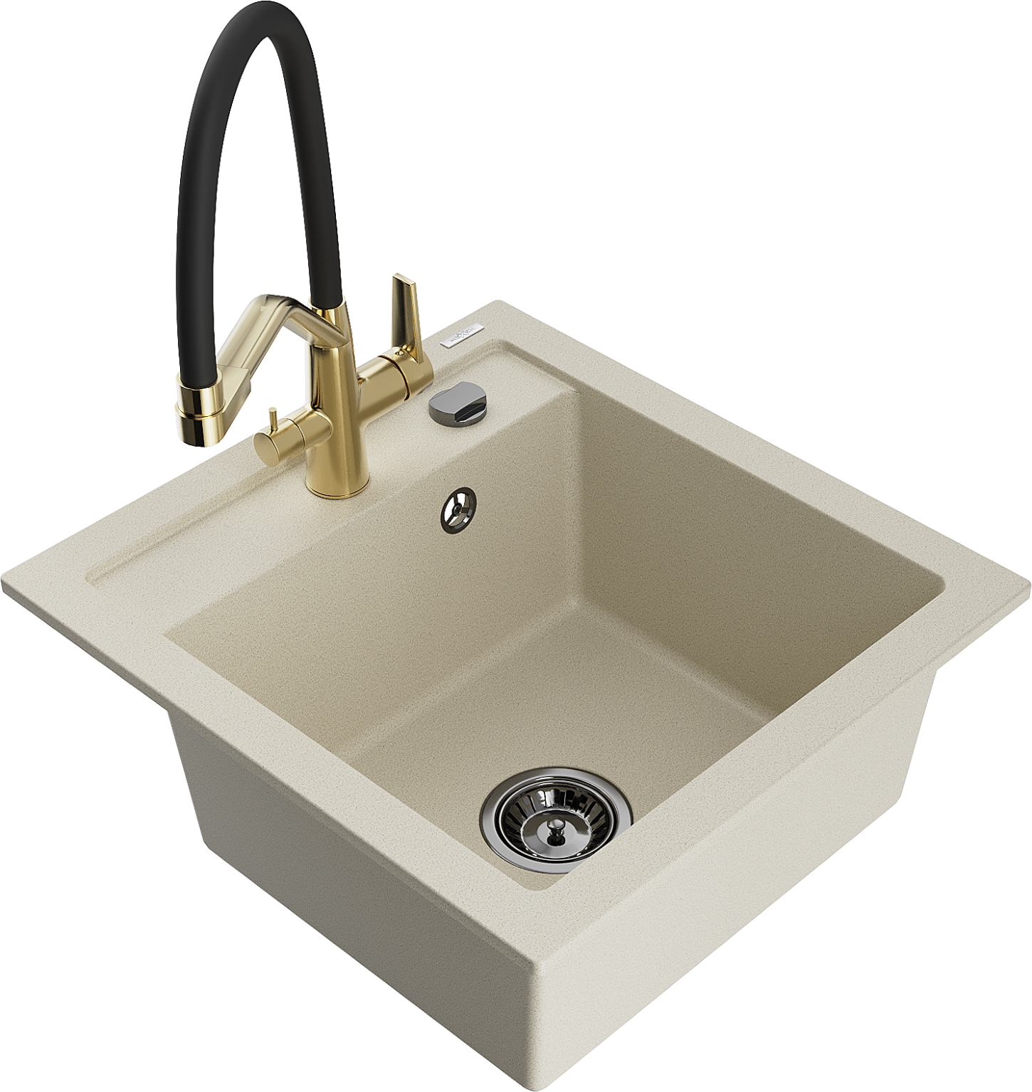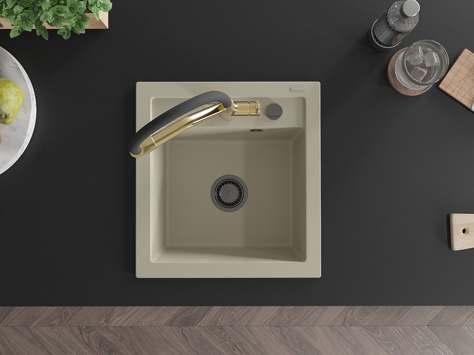 Mexen Vito granieten gootsteen met 1 bak en keukenkraan Duo, beige - 6503-69-671701-57-B